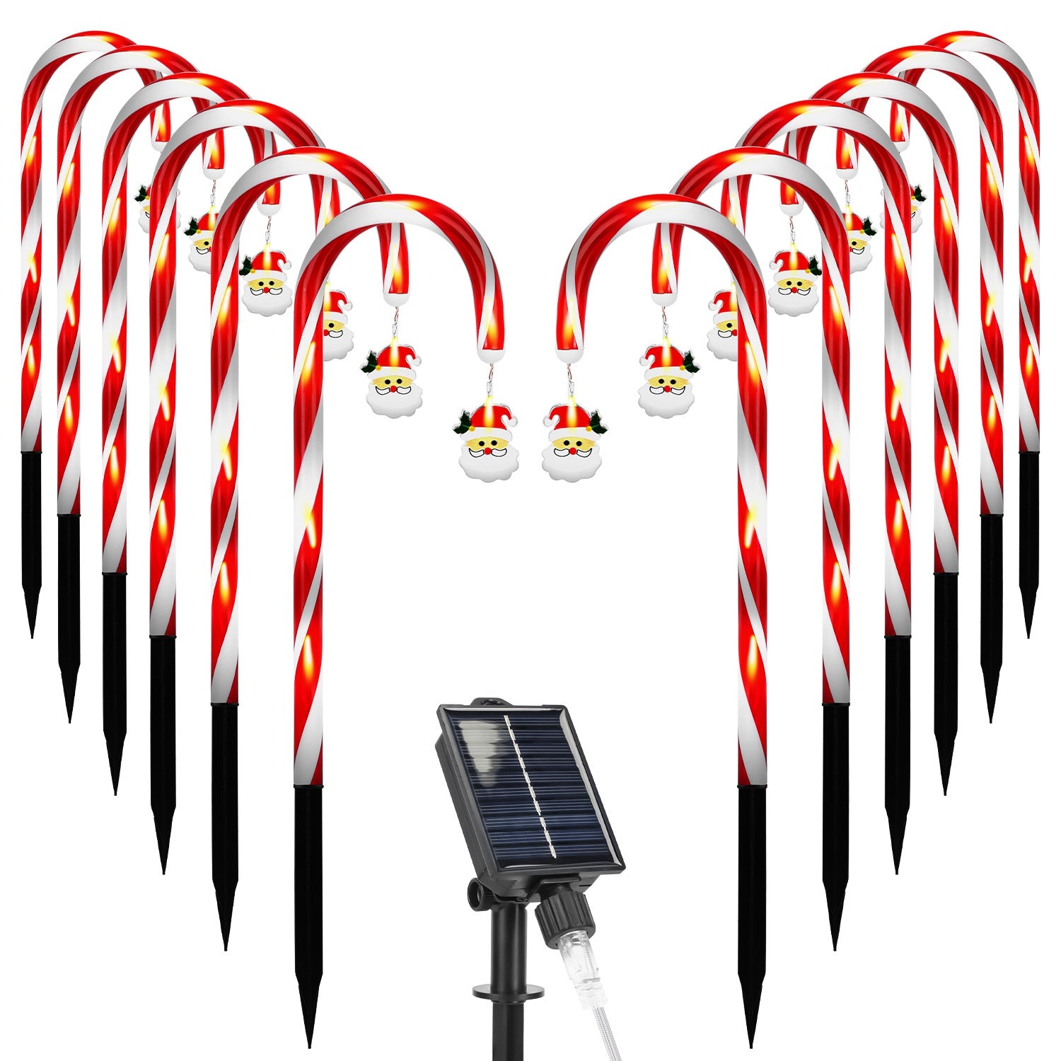 Solar Christmas Candy Cane Lights with 12 Candies 72LEDs Outdoor Christmas Decorations IP44 Waterproof Flickering Pathway Markers String Lights with 8