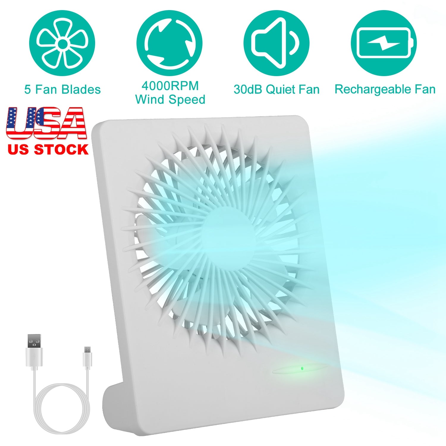 Portable Desk Fan USB Rechargeable Table Cooling Fan Quiet 5 Blades Desktop Fan with 3 Speeds Ajustment for Bedroom Office