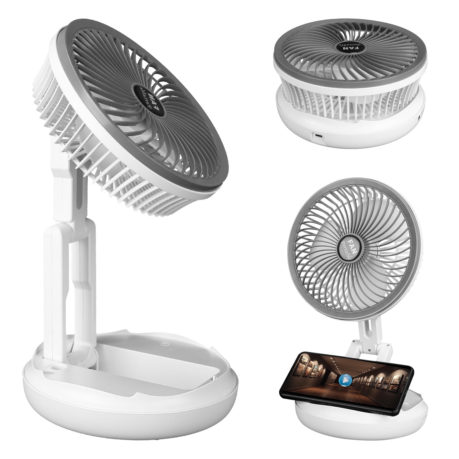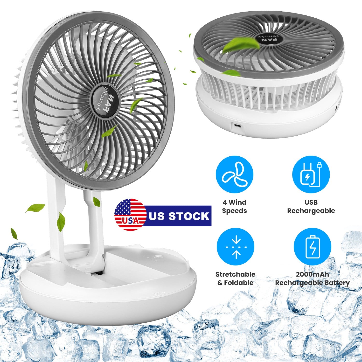 Would you like to enjoy a cool summer both outdoors and indoors? Our folding desk fan is stretchable and foldable for different occasions, such as reading, sleeping, camping, fishing, backpacking, hiking etc.. With 4 wind speeds, our foldaway fan easily cools you down in this hot summer, an ideal companion for home, office, dormitory and travel. Built in 2000mAh rechargeable battery for 5 hours long standby time, a foldable hook for easy hanging, a hole for mounting everywhere. The front cover is removable, easy to clean. USB rechargeable and easy to carry. Get a refreshing breeze anytime anywhere with our mini desktop fan!