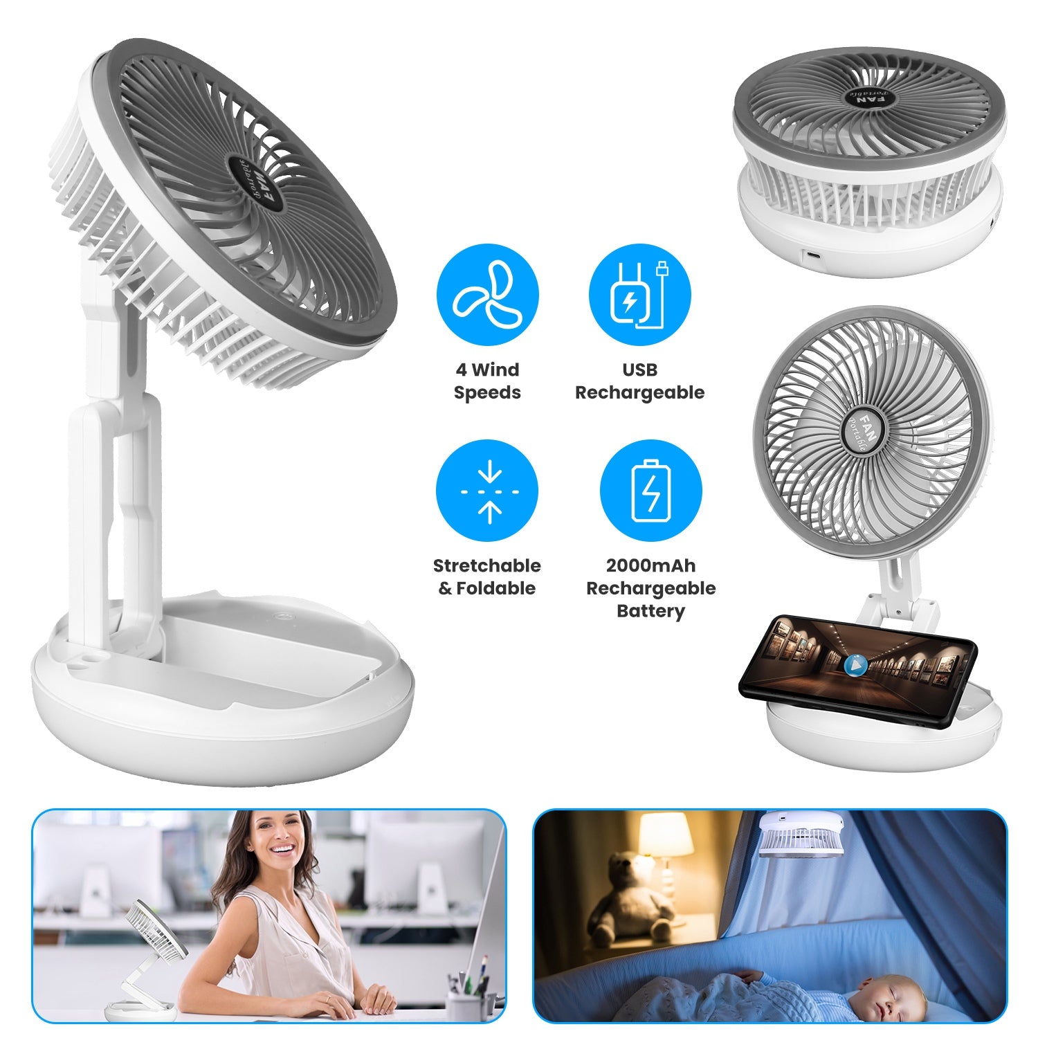 All in 1 Folding Desk Fan USB Desk Fan Small Stretchable Fan with 4 Wind Speeds Hanging Desktop Wall Mounted for Bedroom Dormitory Office Travel Campi