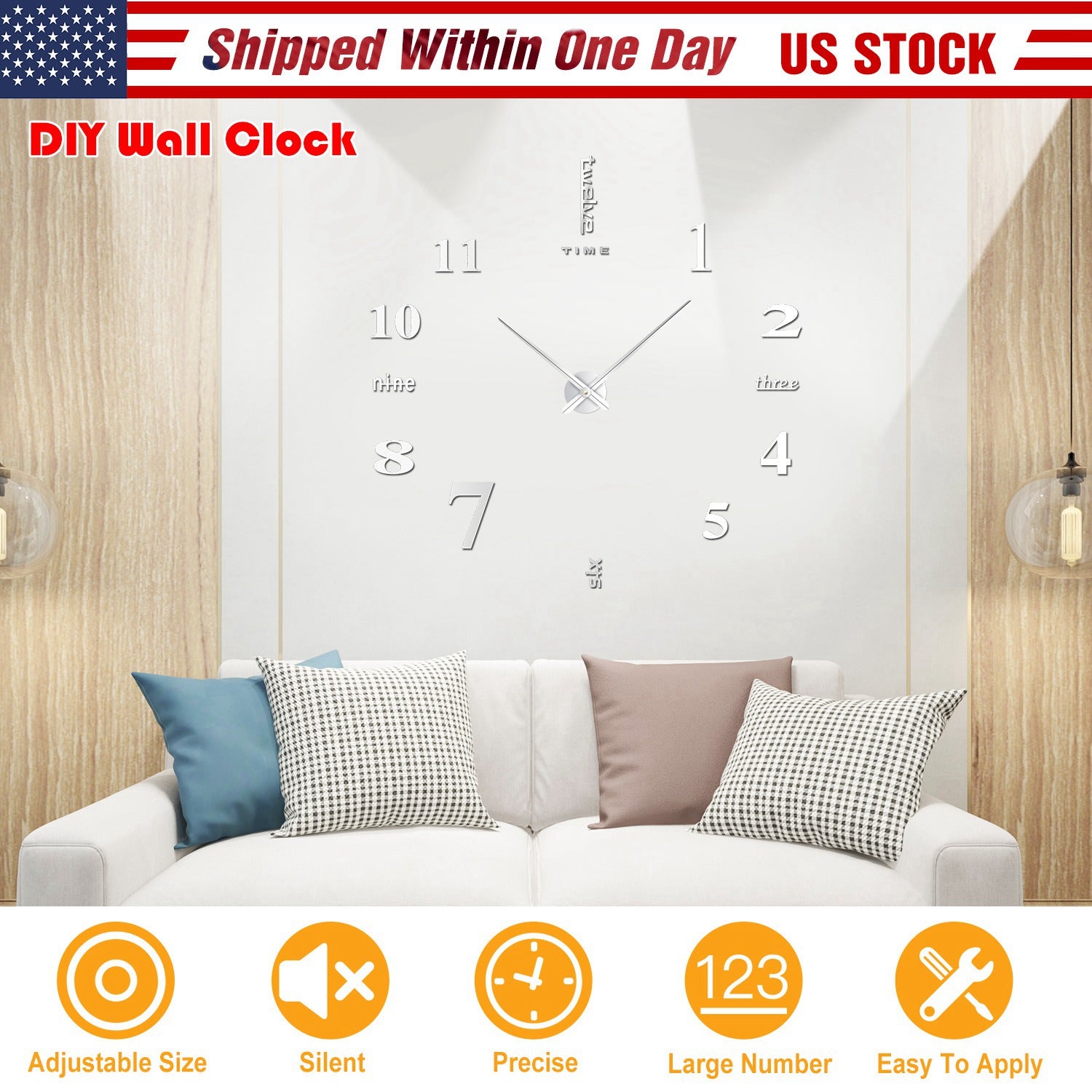 DIY Wall Clock 3D Mirror Surface Sticker Modern Art Wall Clock Home Office Decors Big Number Watch
