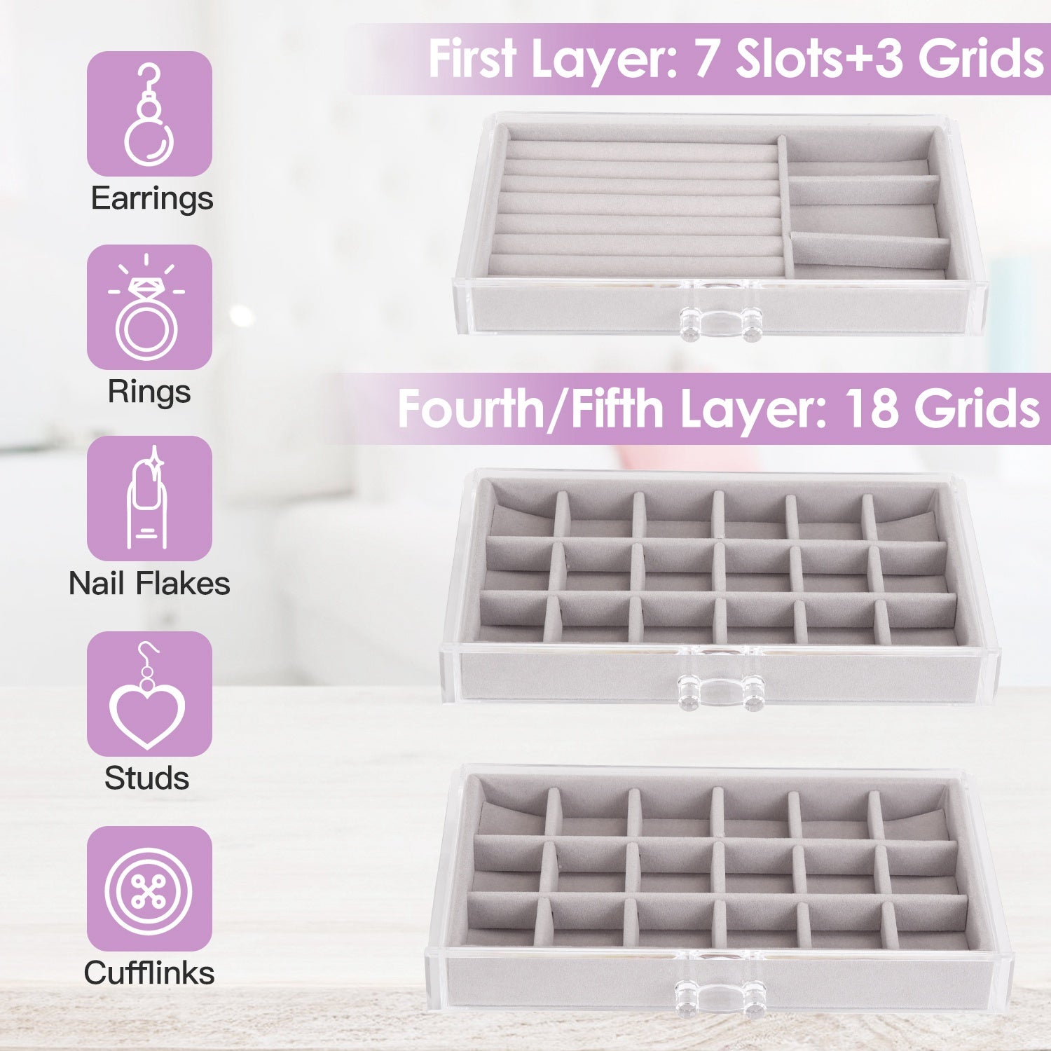 Clear Acrylic Jewelry Box Organizer with 5 Drawers Stackable Jewelry Holder Velvet Storage Case for Earrings Rings Bracelets Necklaces Ideal Gift for