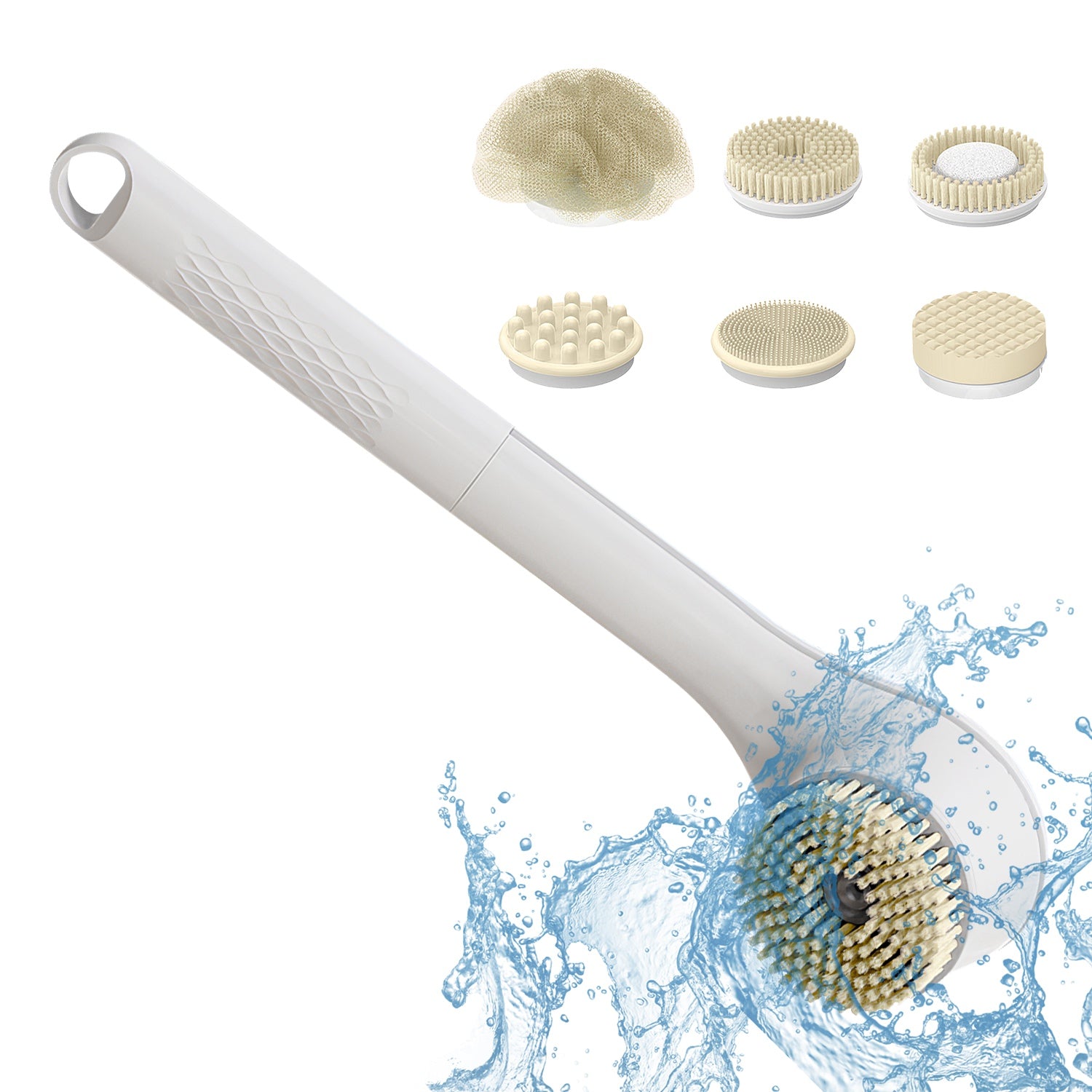 Our electric body brush combines 6 multifunctional brushes in one set, including 1xBath Ball, 1xDeep Bristle Brush, 1xPumice Stone Brush, 1xSilicone Brush, 1xMassage Brush, 1xSponge Brush. Also offer 3 rotating modes to tackle various cleaning needs and leave skin with a fresh and youthful glow. Design with a 30cm/11.81in lengthened handle to help clean your lower back and other hard-to-reach areas. IPX7 waterproof and USB rechargeable. Ensure 180mins of comfortable showering time on a single charge. A thoughtful gift for your beloved ones and yourself!