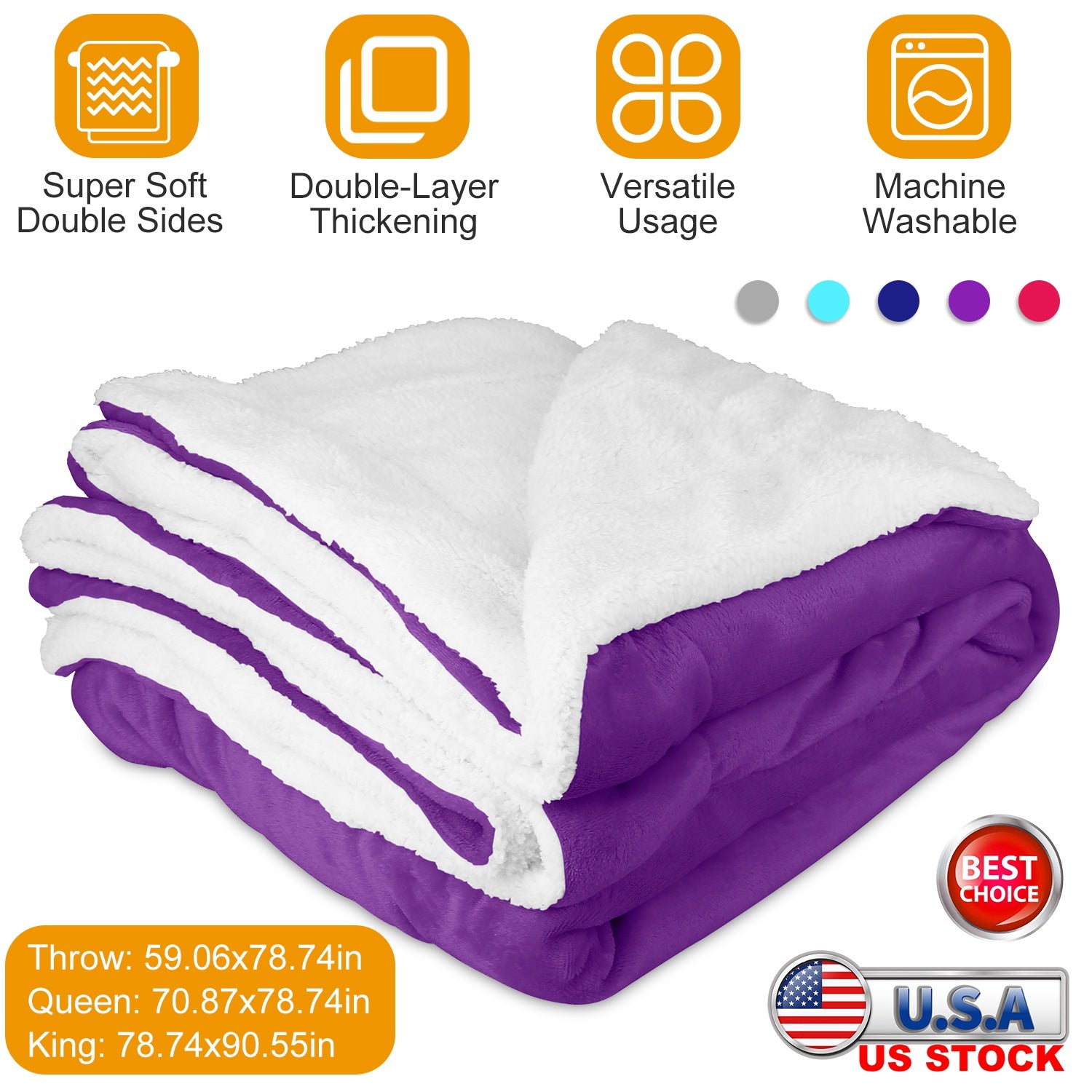 Fleece Throw Blanket Warm Soft Flannel Bed Cover Cuddly Cozy Sofa Travel Car Blanket w/ Queen King Throw Size Optional