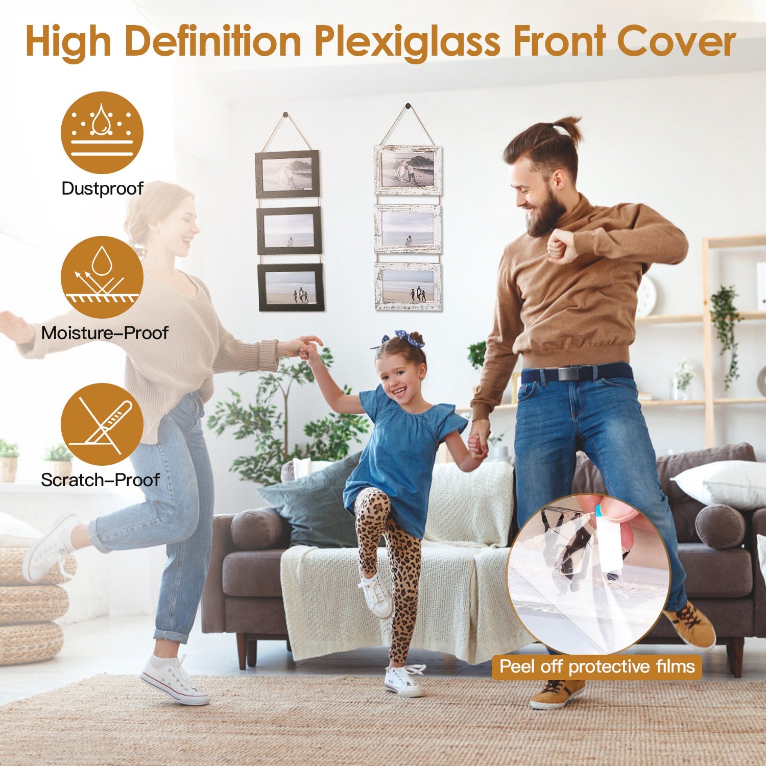 4x6IN Wall Hanging Picture Collage Frame 3-Opening Wall Decor Without Mat Rustic Style Wood Photo Frame Display
