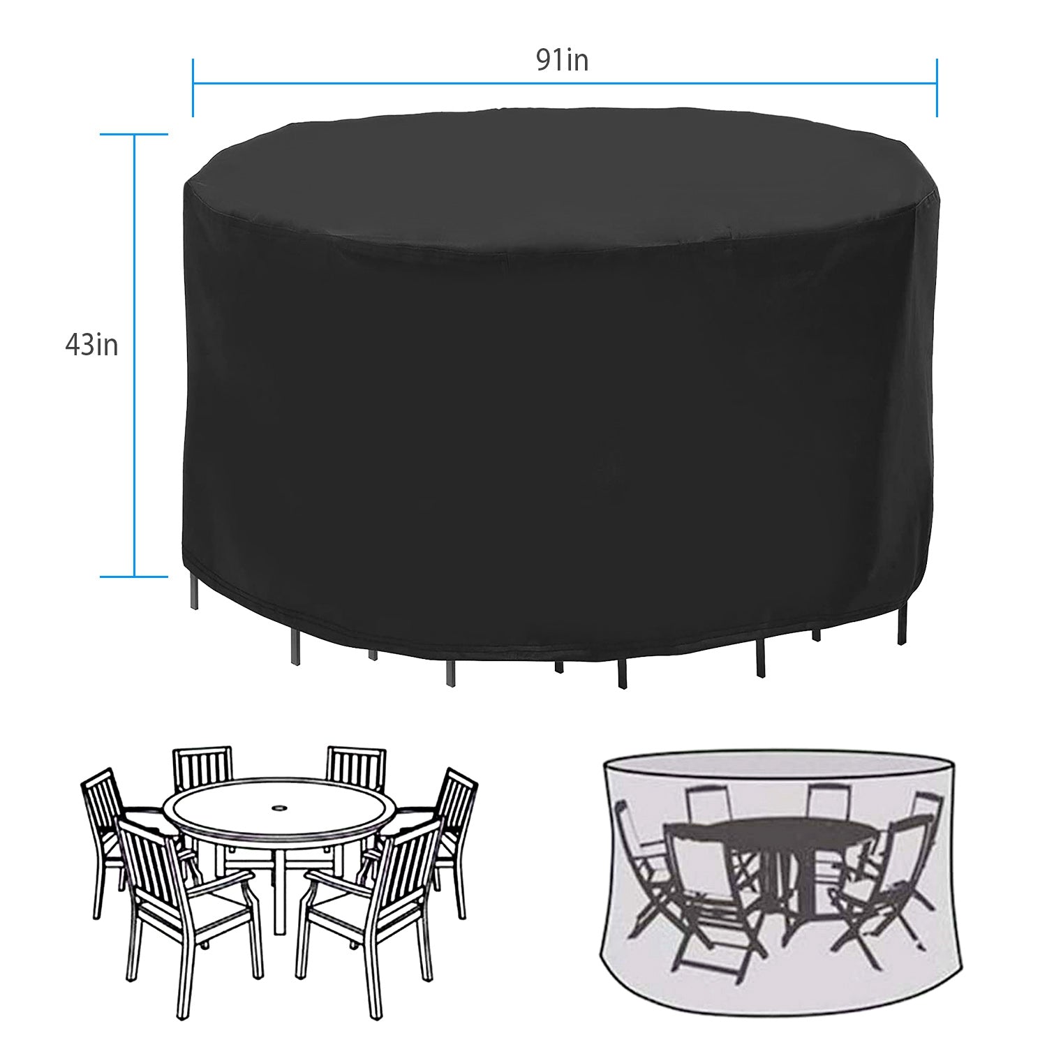 91x43in Circular Table Cover 6-Seat UV Water Resistant Outdoor Furniture Protector For Small Round Table Chairs Set