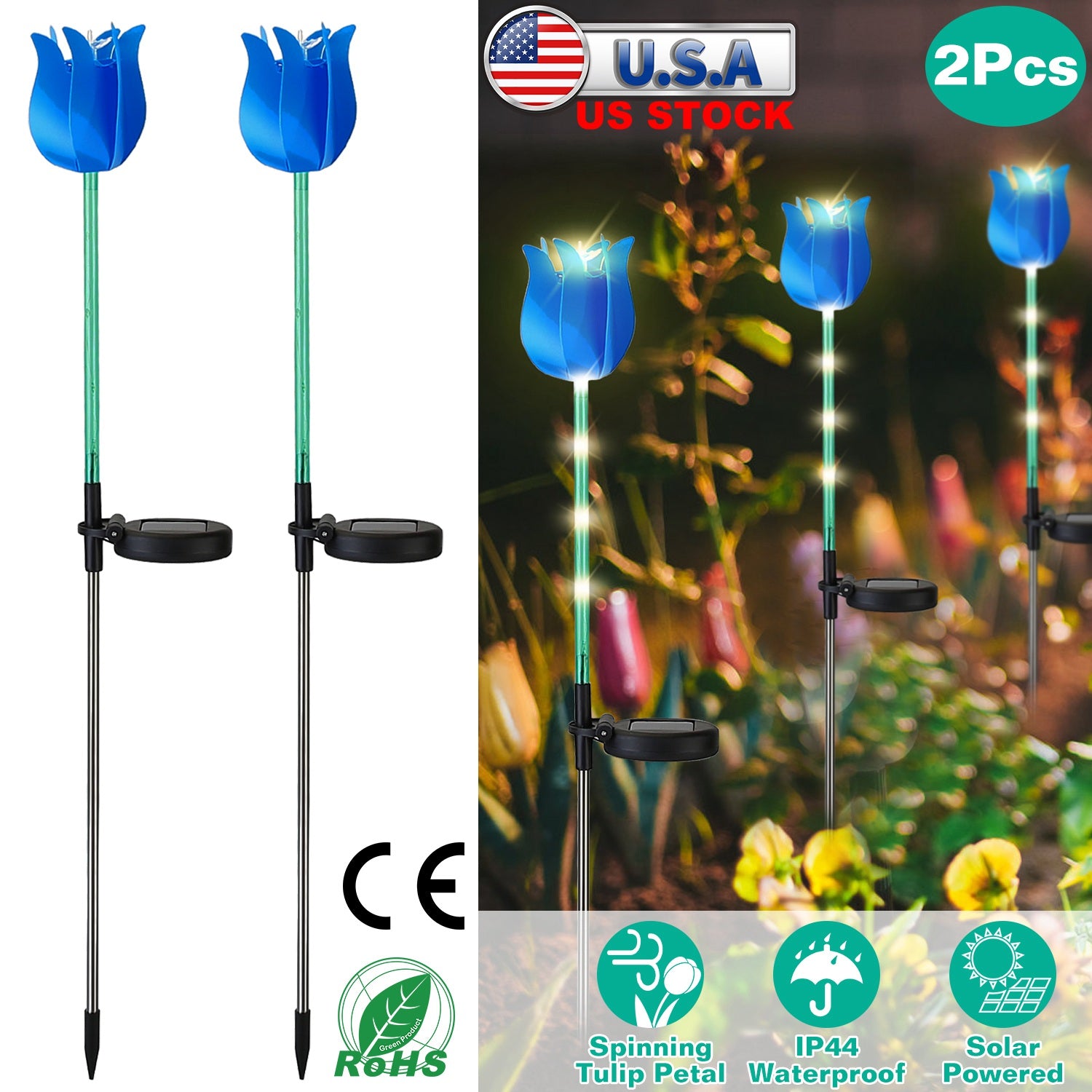 Are you looking for a beautiful and fascinating solar light for outdoor decoration? This is a wise choice for your outdoor decor! Exquisite imitate tulip petal, 6Pcs warm LED lighting LEDs and come with solar panel that absorbs sunlight by day. At night, it seems that greeting your visitors when the wind breezing. Long-lasting LED light automatically turns on at dusk and off at dawn, creating a warming and beautiful landscape for you. IP44 Waterproof performance and no wiring needed, it is great to decorate your garden, lawn, pathway, patio, walkway, fence, backyard etc..