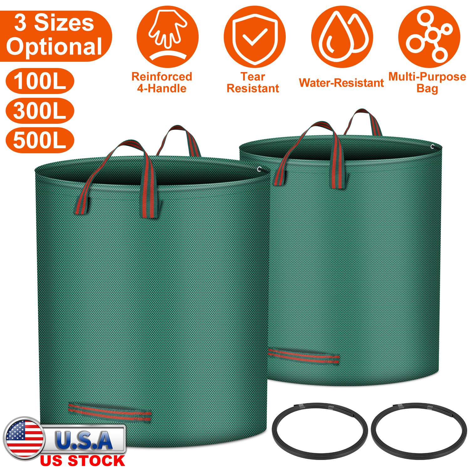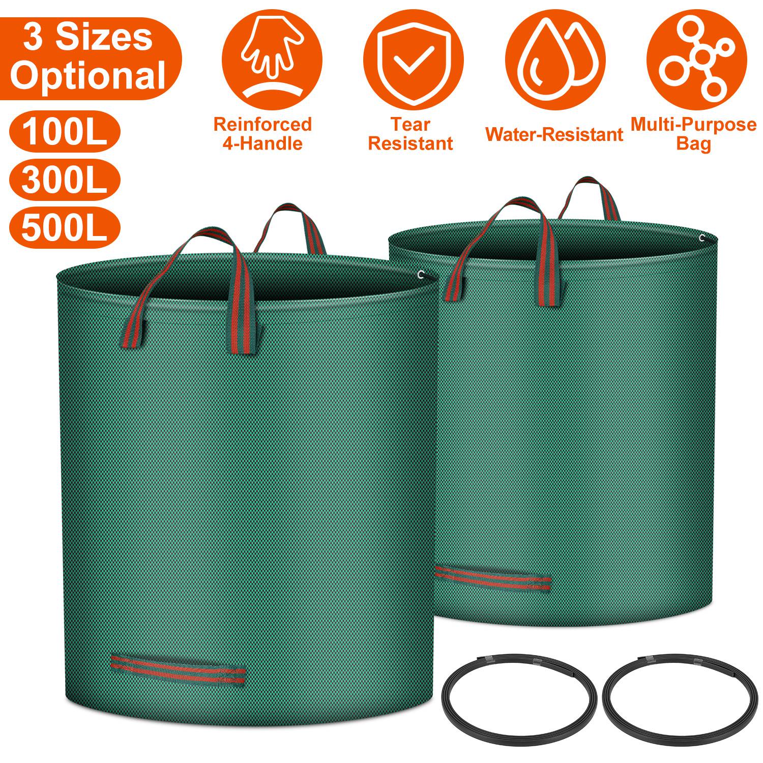 2Pcs 26.42Gallons Round Garden Waste Bags Waterproof Reusable Grass Rubbish Leaf Sacks Home Garden Lawn Yard Trash Bags With 4 Handles