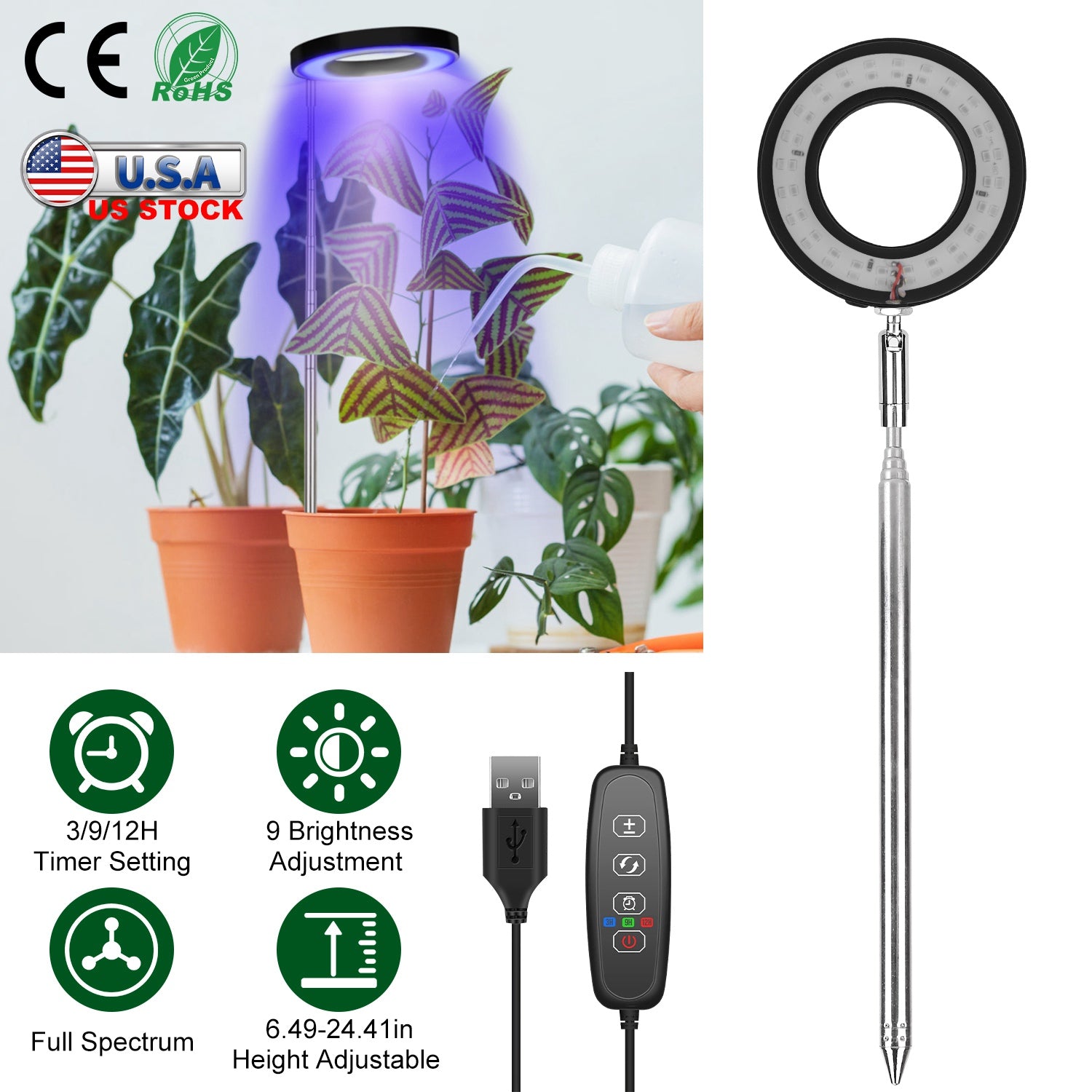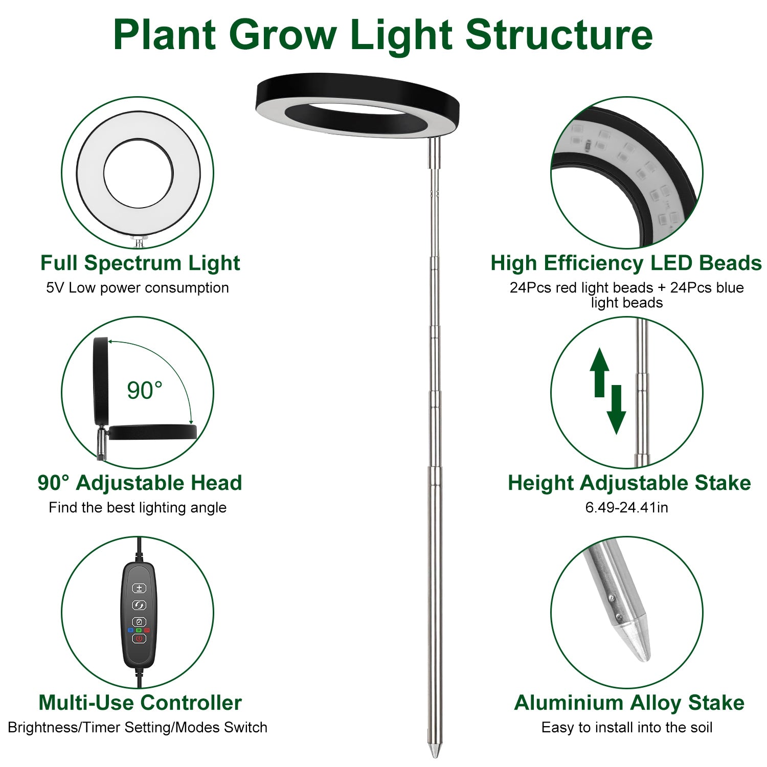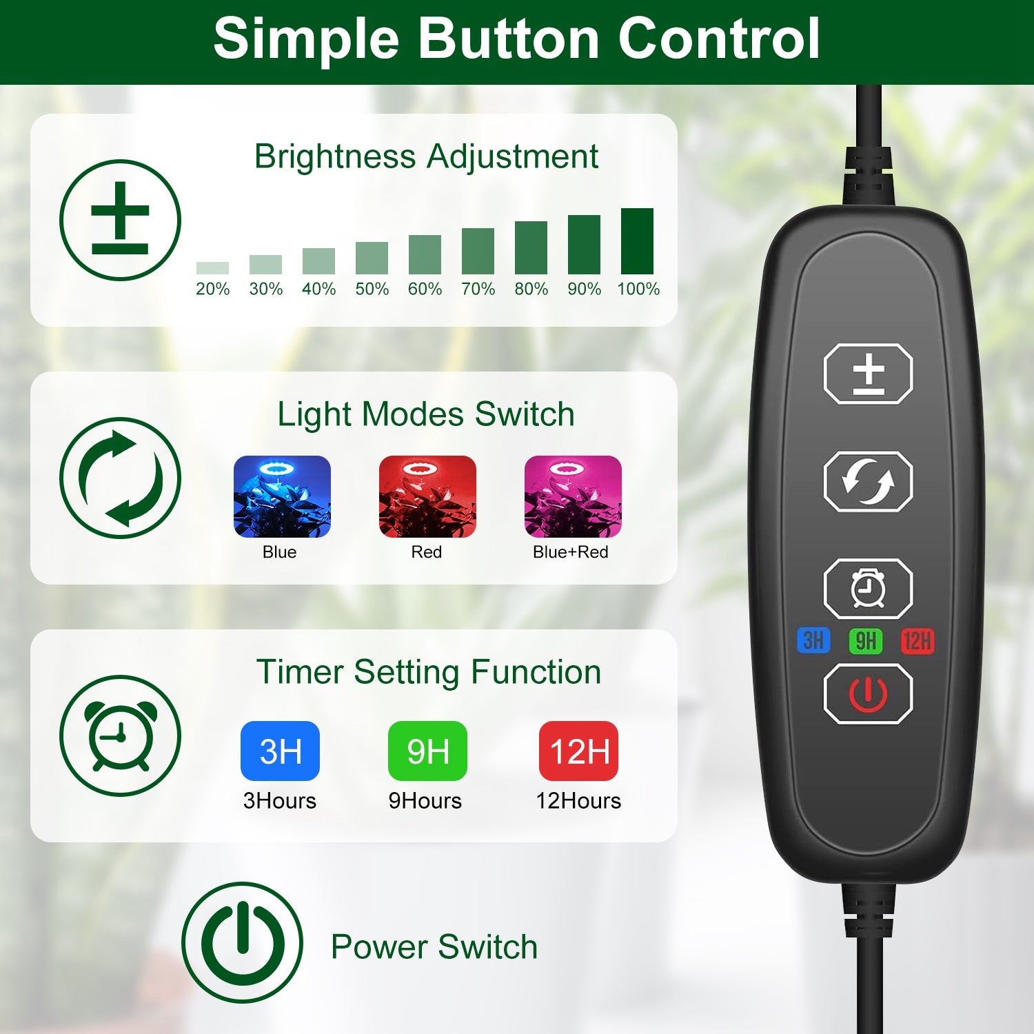 Whether your houseplants are wilting due to lack of sunlight? Our professional plant grow light adopted 48Pcs LED beads emits full spectrum illumination, which is similar to natural environment, to promote the growth and inhibit the incontinent growth of plants to form dwarf. 9 Brightness levels can be adjusted according to your plants need to make sure they get proper light intensity. Height adjustable stake and angle rotatable head achieve better illumination results. You can set up the hours (3/9/12H) as you like for your plants, then it will automatically turn on and off at the same time the next day, without repeatedly operation. Widely used for a variety of bonsai and indoor garden plants.