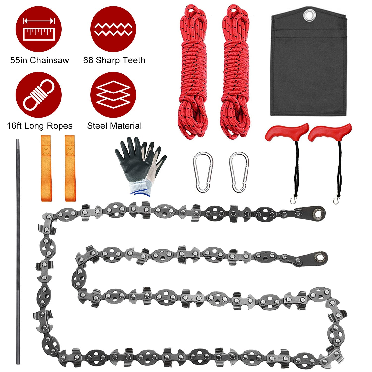55in 68 Sharp Teeth Hand Rope Chainsaw Kit Blades on Both Side High Tree Limb Rope Saw with 196in Ropes Folding Pocket Chainsaw Carabiner Glove Wood C