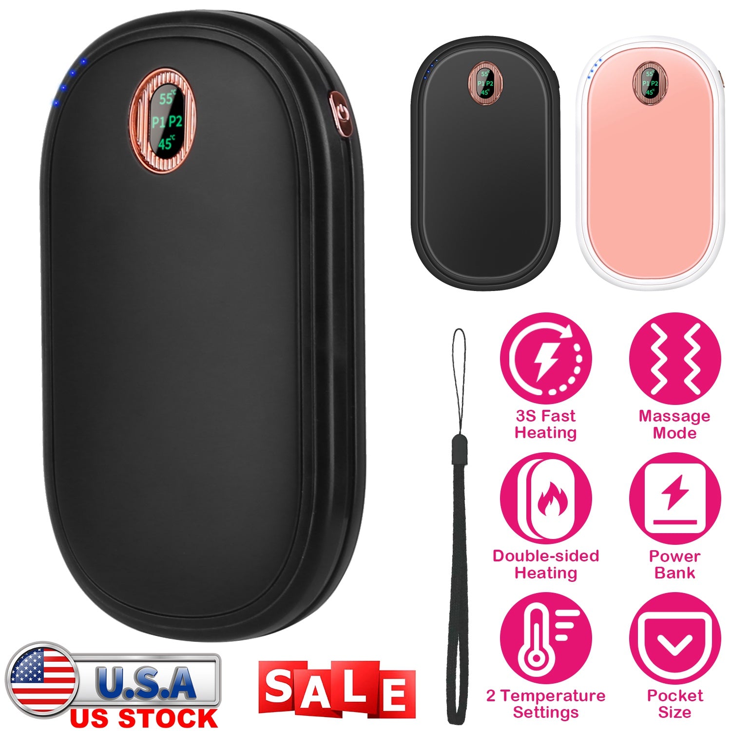Rechargeable Hand Warmer Electric Hand Heater Portable Reusable Pocket Warmer Power Bank with Digital Display 2 Levels Double-sided Heating