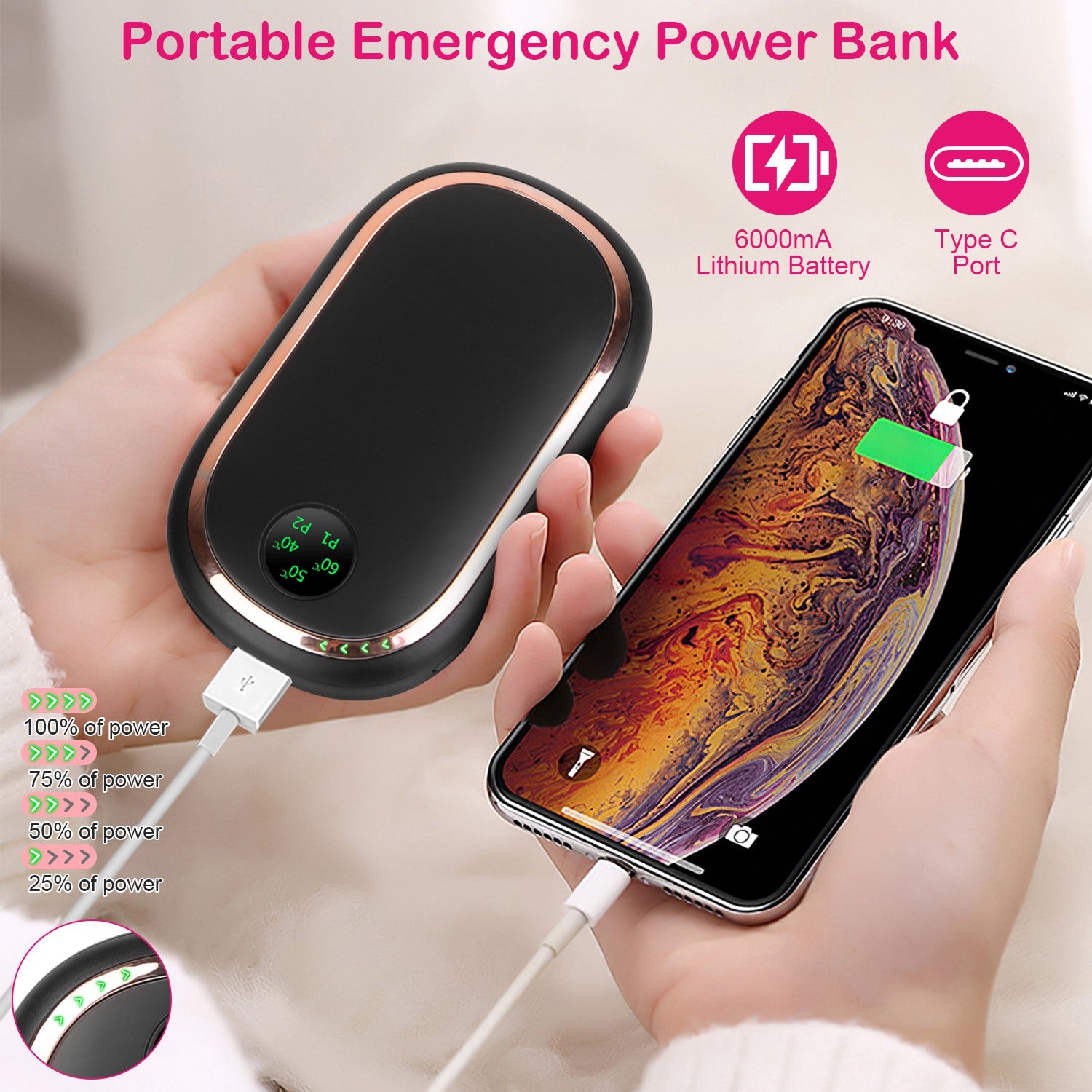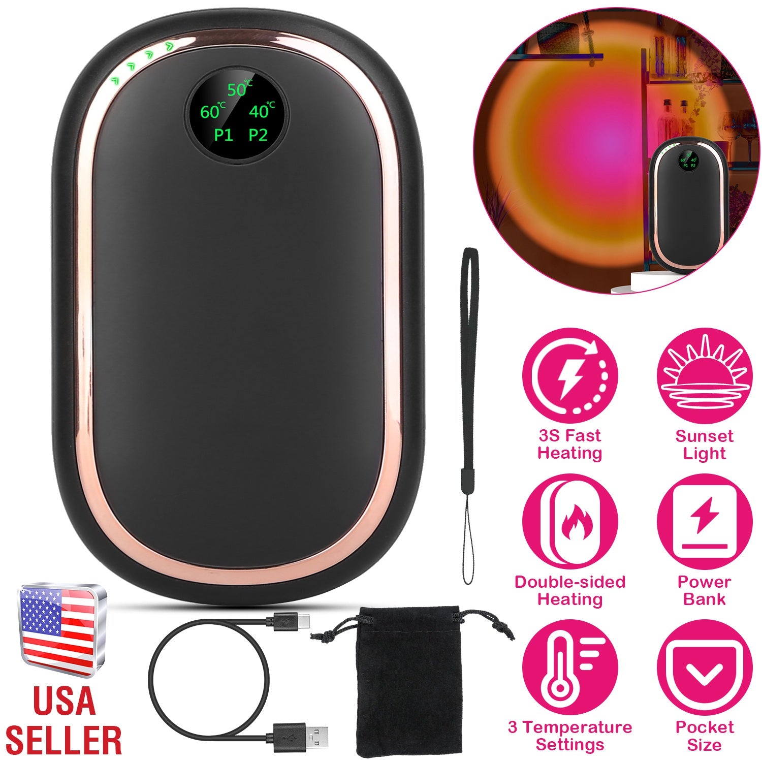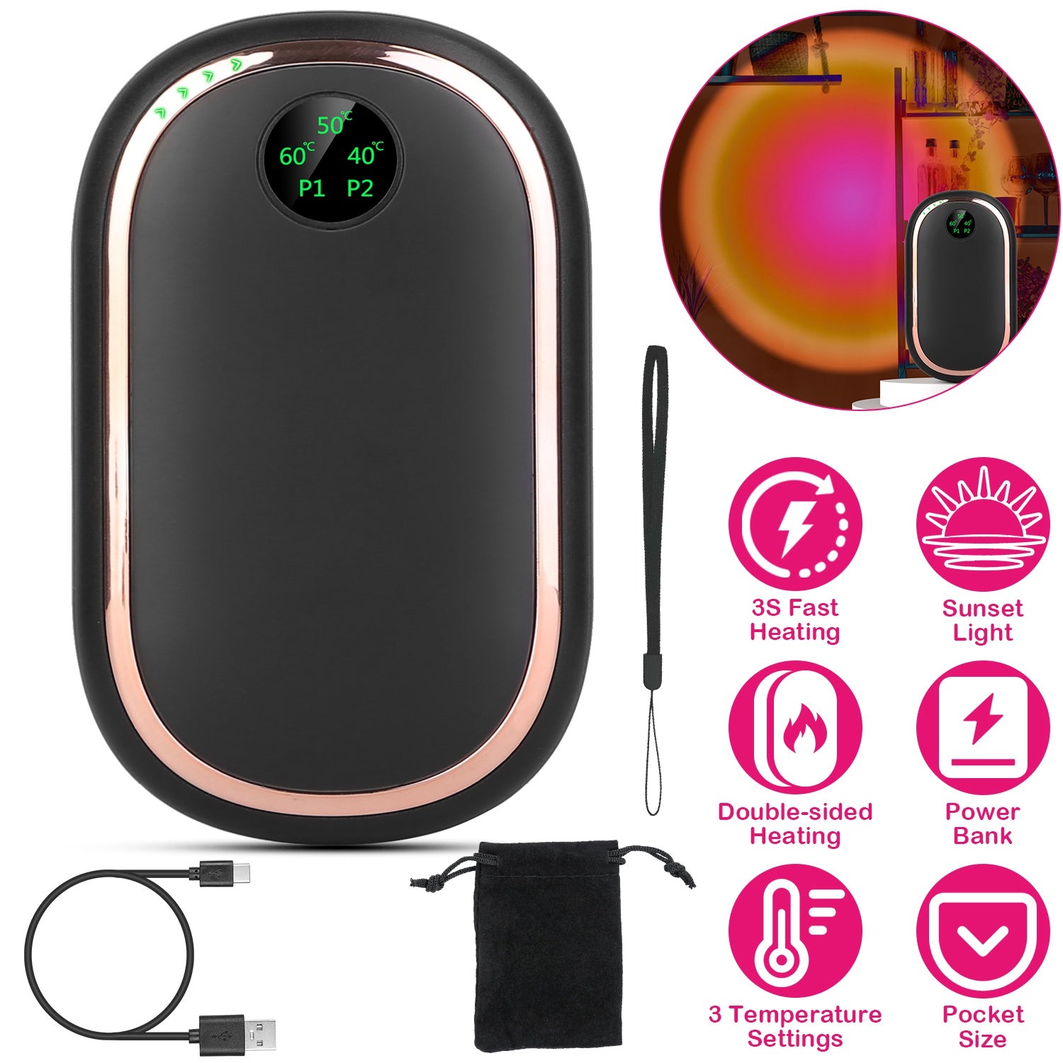 Rechargeable Hand Warmer Electric Hand Heater Portable Reusable Pocket Warmer Power Bank with Digital Display Sunset Light 3 Levels Double-sided Heati