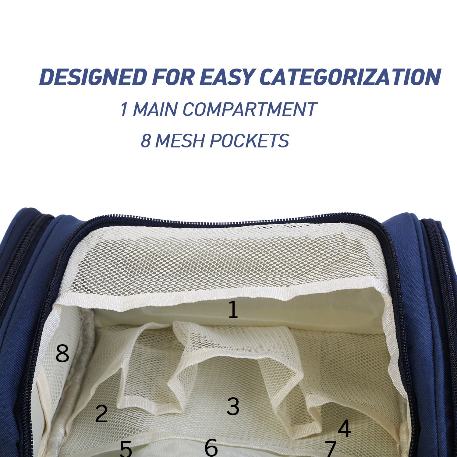Organize and carry your essential on-the-go cosmetics and toiletries easily and securely with this lightweight bag that offers maximum protection and multiple interior pockets for categorization. Water-repellent and ripstop exterior protect against scratches and moist. Other than being a handy travel bag, itÕs also a great bathroom organizer when youÕre not travelling, simply hang it wherever convenient to store your makeup and toiletry products.
