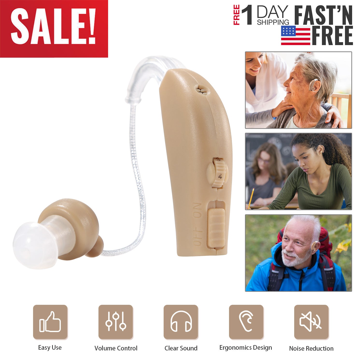 Our iMounTEK Hearing Aid adopts ABS material and ergonomics design, durable and comfortably suit. Noise cancelling enables you to hear sound more clearly and loudly. Volume scroll enable you to adjust the sound as your requirement. Widely used among elders and riding trip.