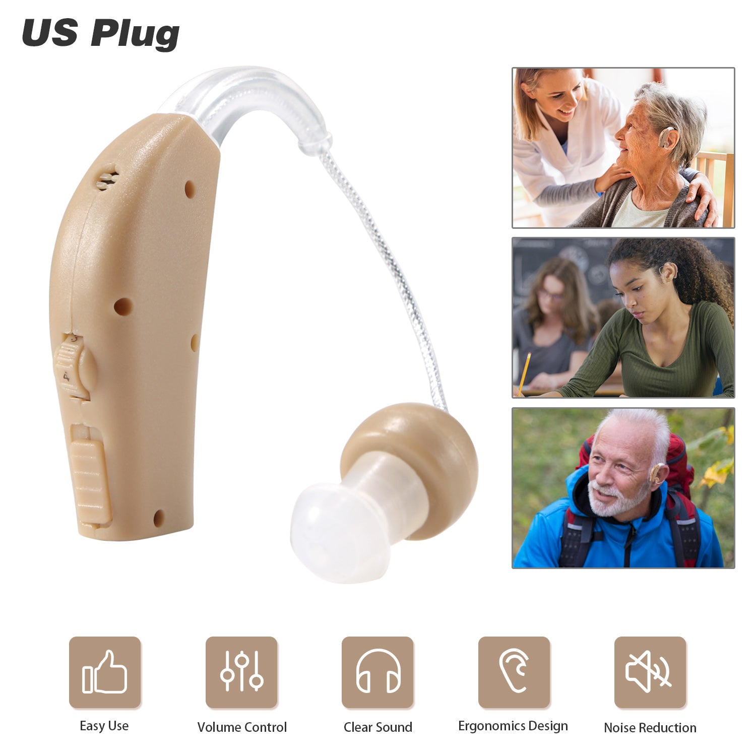 iMounTEK Digital Ear Hearing Aid Kit Rechargeable Noise Cancelling Hearing Amplifier US Plug for Elders Voice Amplifier