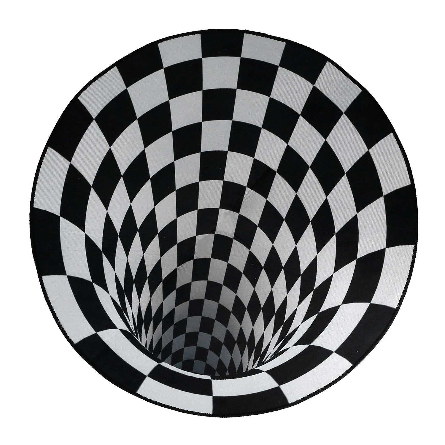 Our creative floor mat is featured with black and white checkered design that produce an optical illusion. Made of soft polyester fiber, non-toxic, odorless, soft to the touch. Anti-slip backing helps prevent sliding. A great decoration for children\'s bedrooms, dormitories, front door, etc..