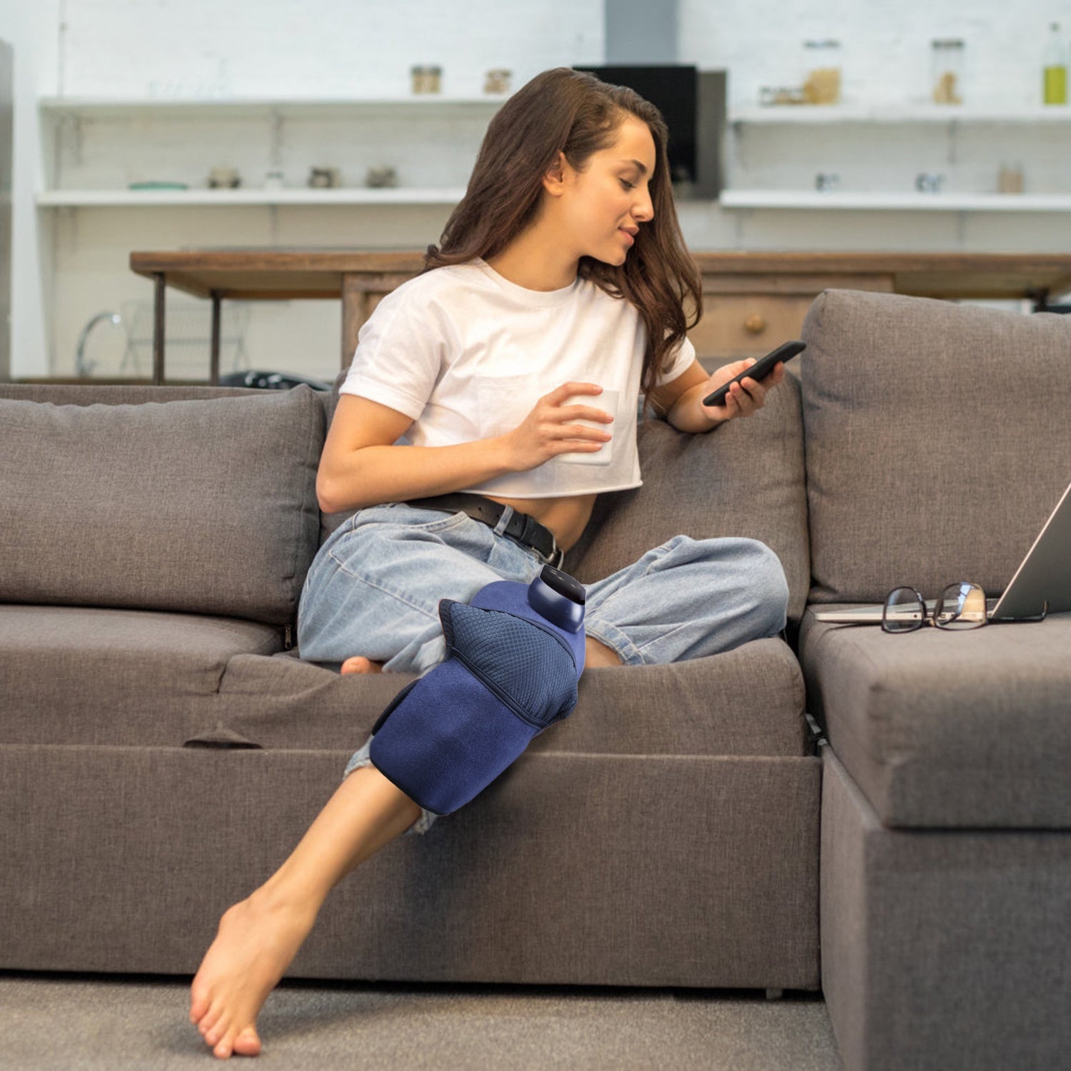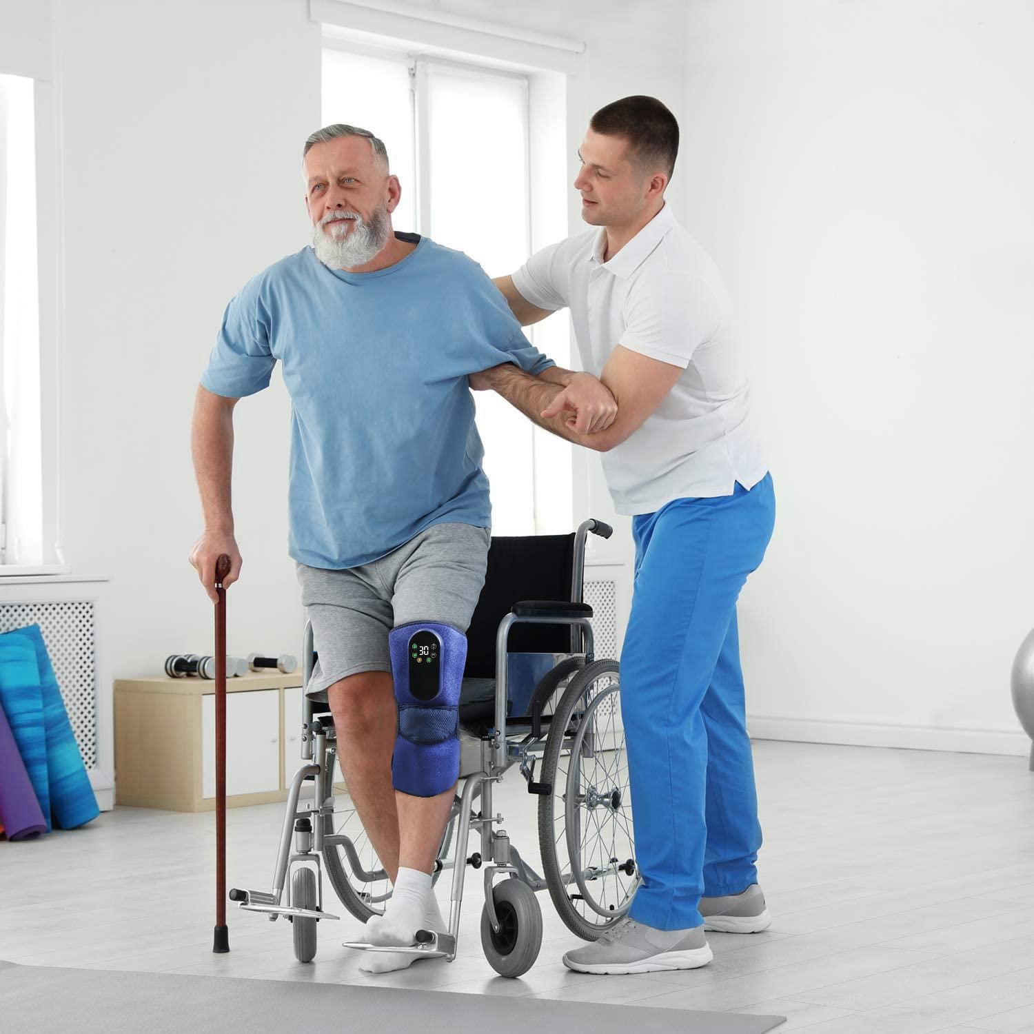 Our Electric Knee Brace Wrap provides vibration massage, air compression massage and comfortable heating modes with 5 heating levels, 3 vibrating levels, 3 modes and 3 levels of air compression, which is great to relieve your tired knee, calf, or thigh, boost circulation, reduce joint pain, and relieve muscle soreness/stiffness, providing for pain relief and injury recovery. The inner pocket can make you enjoy hot/ice compress. Built-in 1800mAh battery allows you to enjoy massaging anywhere without messy cord. Able to work about 40mins after fully charged about 100mins via our included Type-C cable. You can wear it to work, study, do housework, etc.. A perfect gift for mom, dad, grandparents or friends in their birthday, Thanksgiving, Christmas.