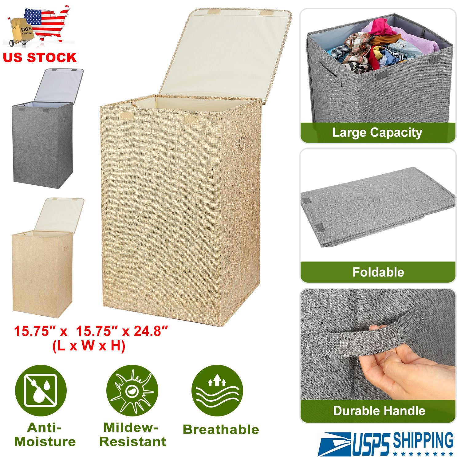 Foldable Laundry Hampers Washing Clothes Laundry Basket w/ Lid Handles Storage Organizer