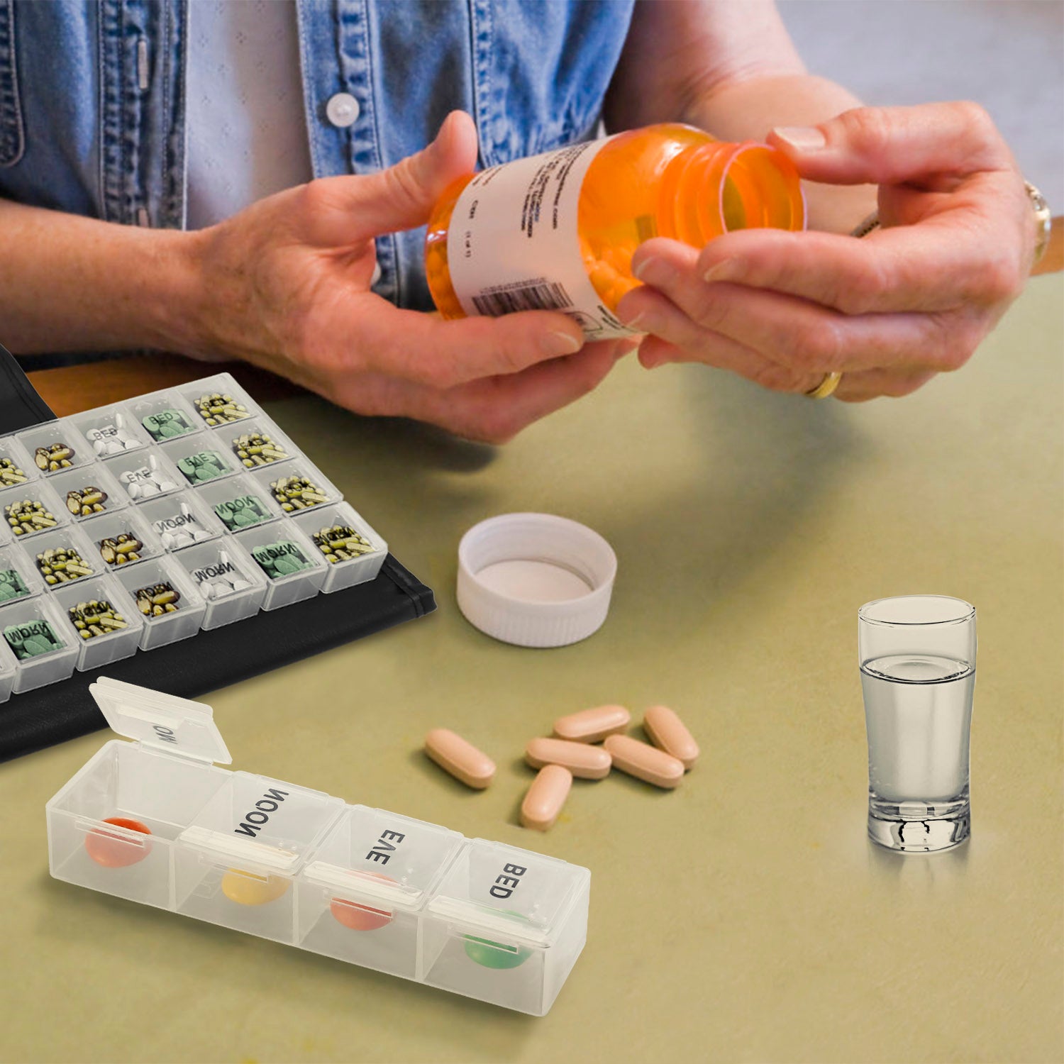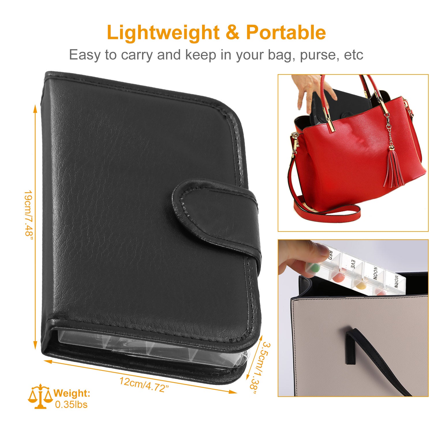 Weekly Pill Organizer AM PM Daily Medicine Pill Planner BPA Free Pill Box Vitamins Medication Supplements Holder with PU Leather Case