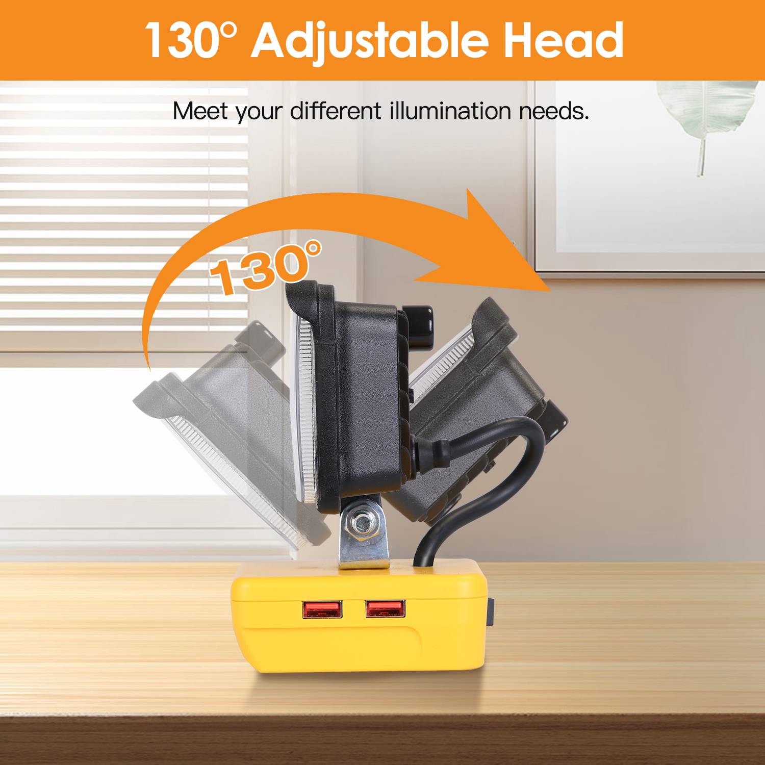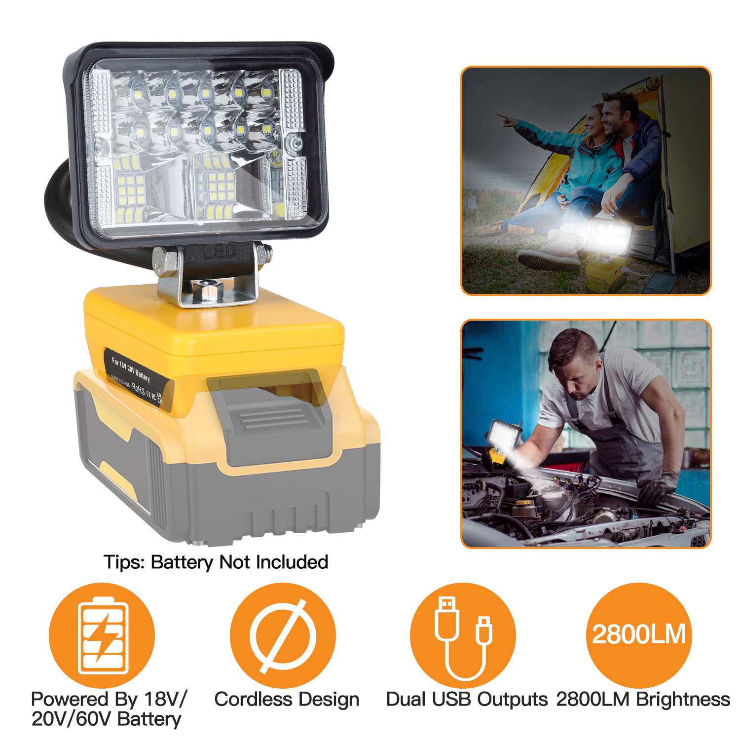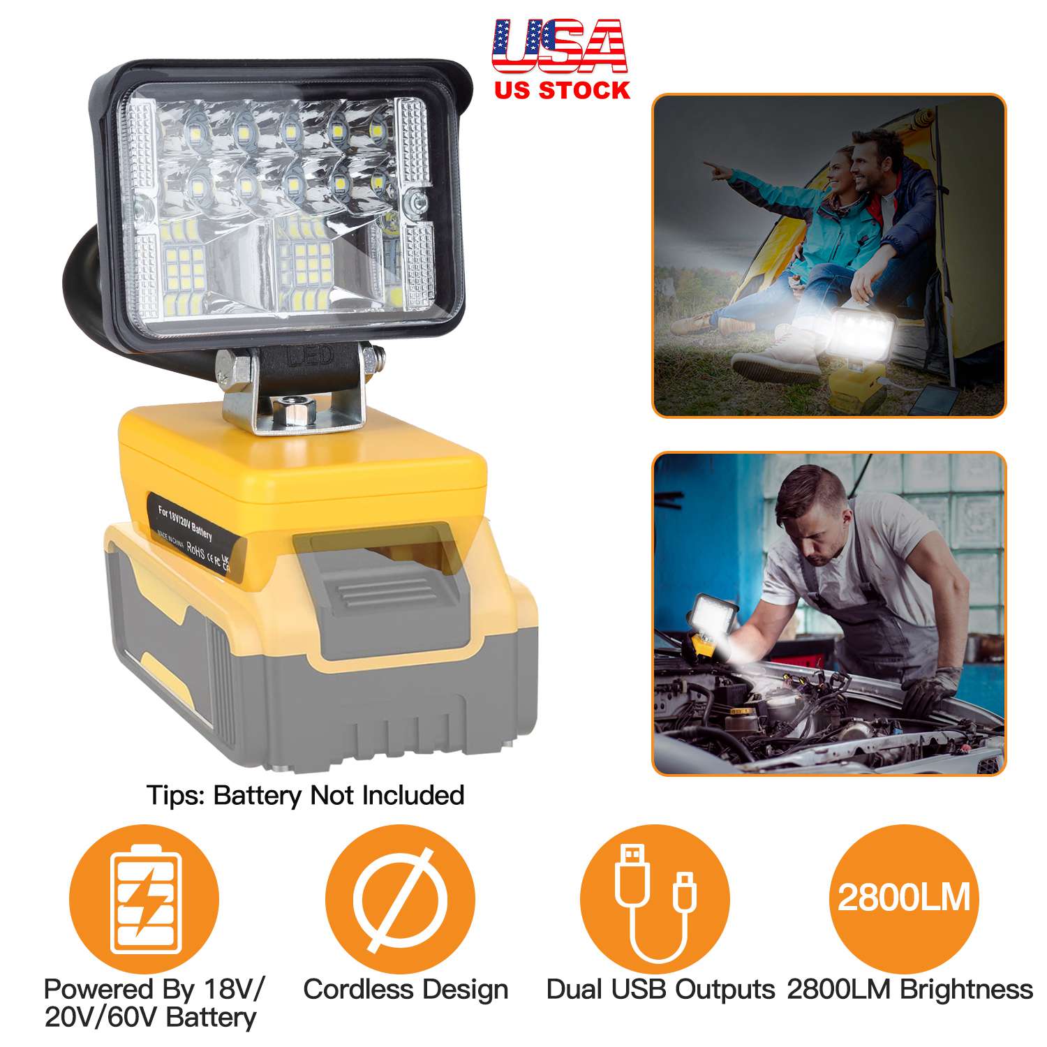 Cordless LED Work Light LED Flood Light for Dewalt 18V 20V 60V Battery 12W 2800LM with Dual USB Charging Port for Workshop Camping Outdoor Emergencies