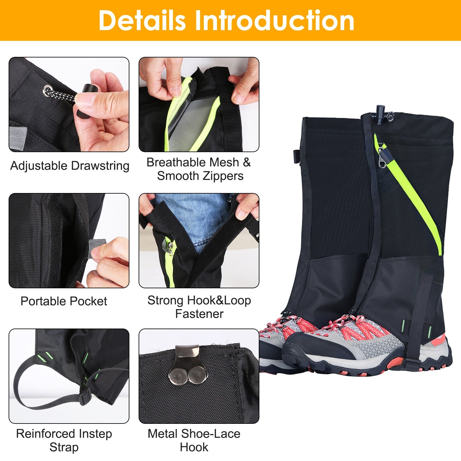 Leg Gaiters Waterproof Snow Boot Gaiters Snow Legging Shoe Gaiters Leg Cover for Walking Hunting Mountain Climbing Snowshoeing