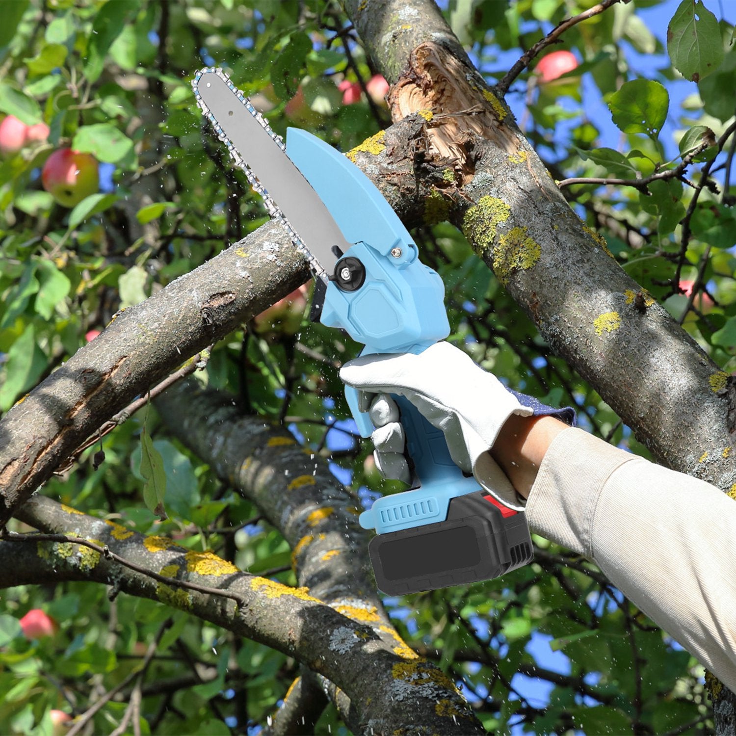 Electric Mini Chainsaw Portable Handheld Cordless Small Chain Saw Battery Powered with 2Pcs 1200mAh Rechargeable Batteries 8in Chains Gloves Goggles f