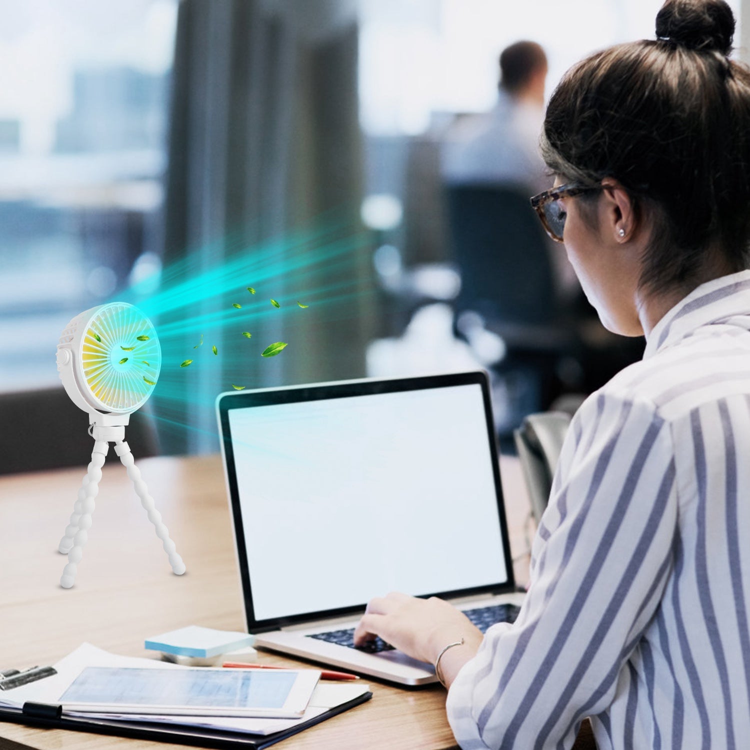 Portable Baby Stroller Fan Rechargeable Handheld Fan with Flexible Tripod Clip On Desktop Hanging Fan 3 Gear Speed 360¡ Tilt Head