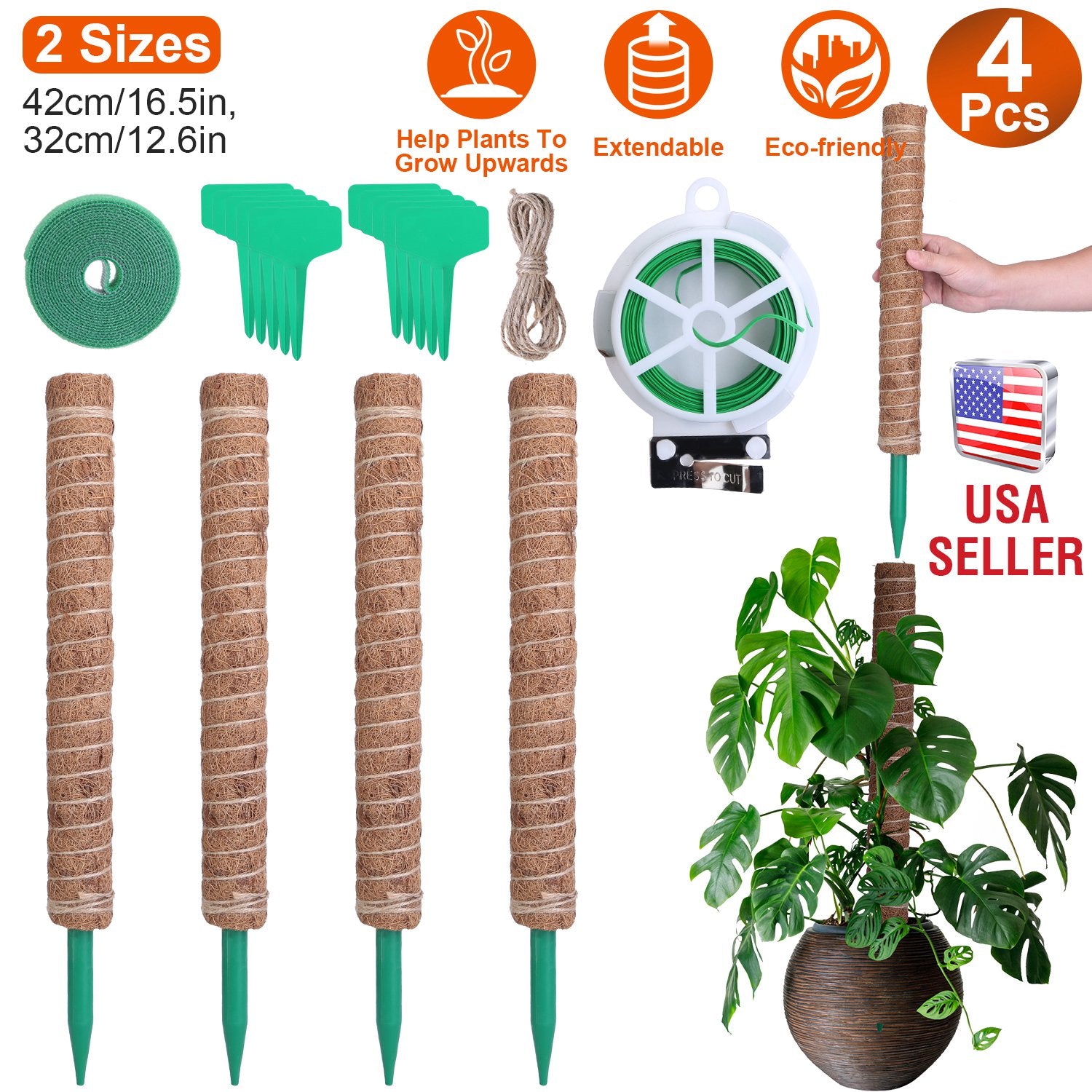 4Pcs Coco Coir Extendable Moss Pole for Climbing Plants Plant Support with 10 Labels 6.6Feet Jute Rope 6.6 Feet Fasten Strap 65.6 Feet Twist Tie Indoo