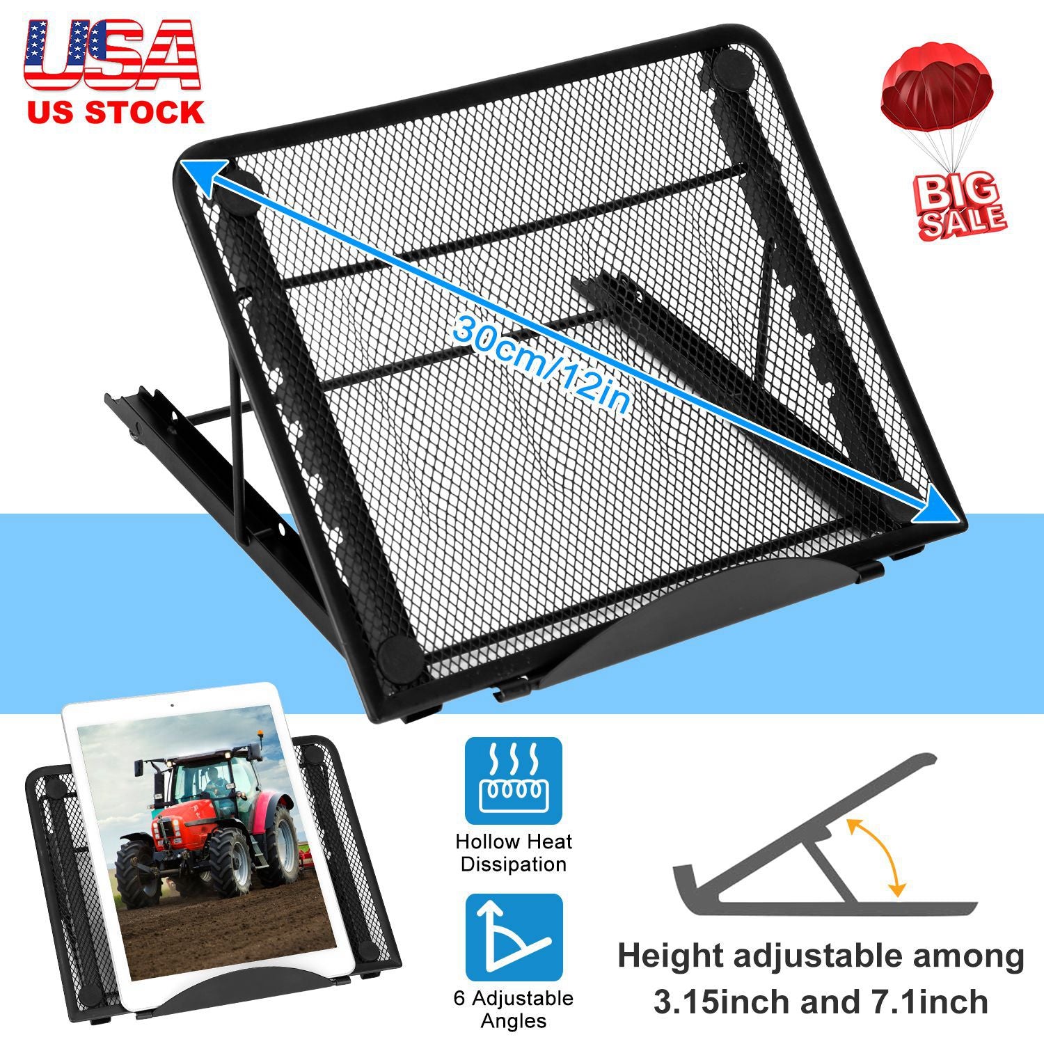 The adjustable angles of our laptop stand elevates display for easier viewing and helps to obtain the perfect typing position. Ventilated design improves air circulation around the computer so as to improve heat dissipation effect and cooling. The versatile tilt system adjusts to your working style. Durable and ergonomic design suits you.