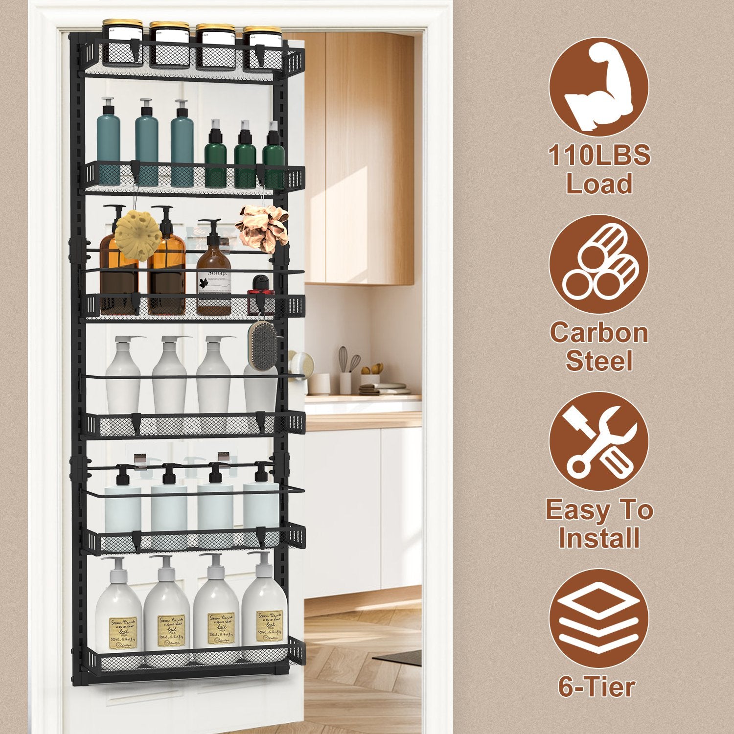 Over The Door Pantry Organizer 6-Tier Pantry Door Organizer Carbon Steel 110LBS Loading Easy Install Behind Door Storage For Closet Kitchen Bathroom 5