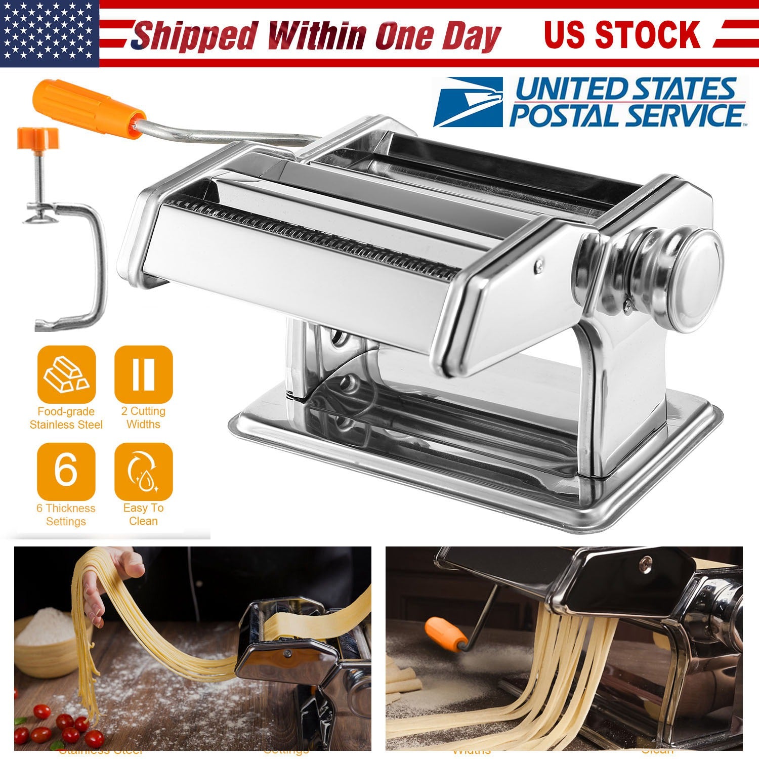 Our pasta machine is coming to be an excellent kitchen accessory, with it, you are able to make pasta at ease without taking much time and effort. There are 9 adjustable setting of thickness (from 1-4mm) and 2 pasta width (2mm & 6mm) for your choice, which supports for making traditional lasagne, fettuccine, raviol, lasagne and so on. Get diverse flavors and nutrition as long as you want! Our pasta machine is made of stainless steel and its pasta cutter can be taken apart, which makes it easier to get to all those otherwise hard-to-reach nooks while cleaning, and also easy storage.