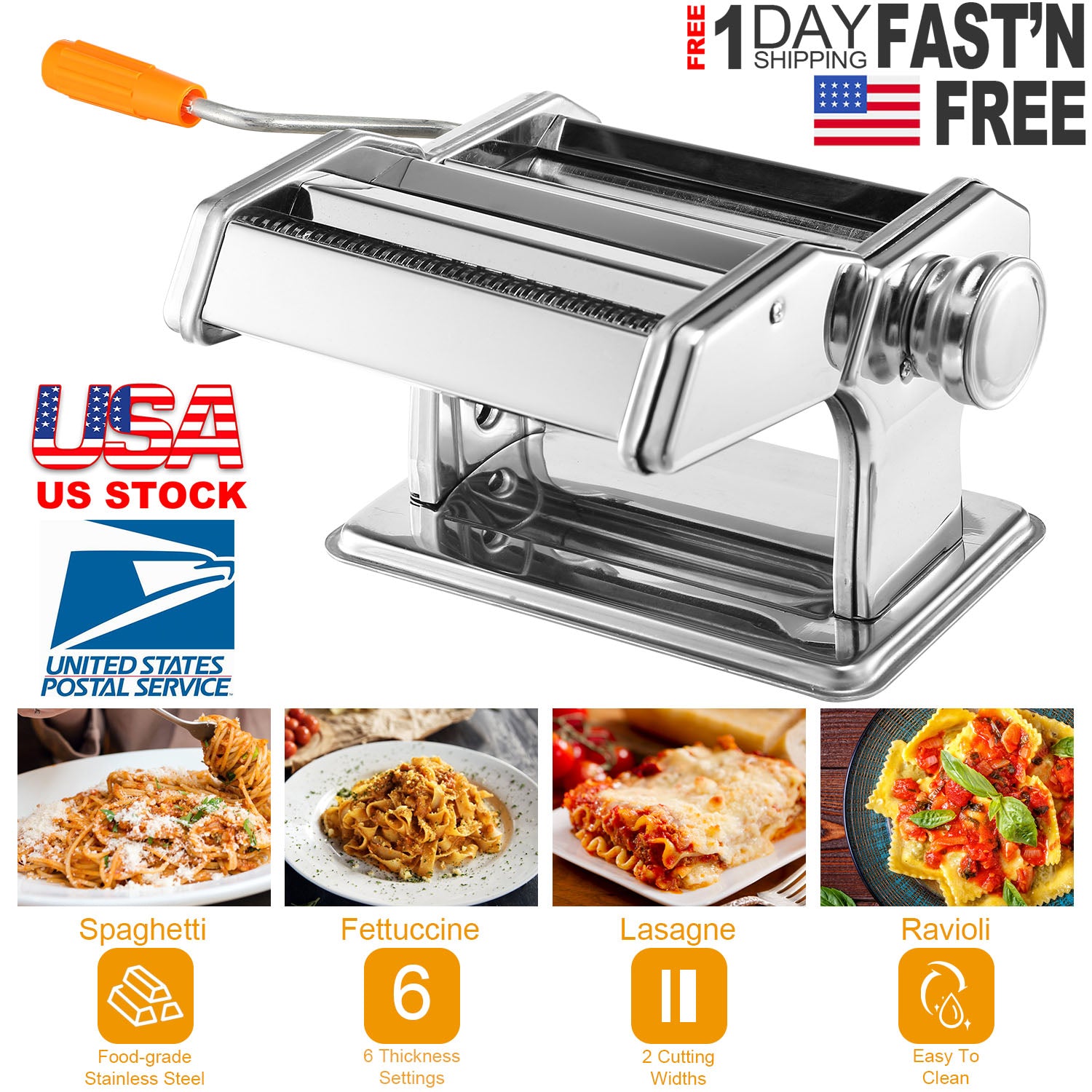 Pasta Maker Roller Machine Fettuccine Noodle Maker 9 Thickness Settings Stainless Steel
