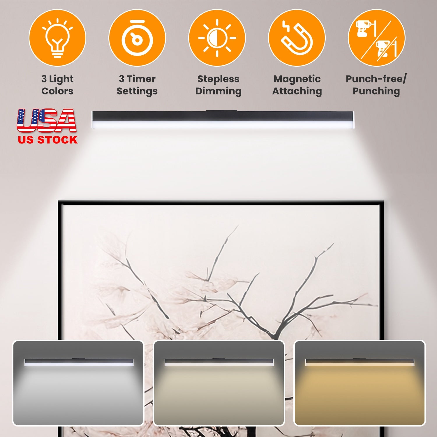 Wireless Picture Light Magnetic Art Display Light Dimmable Rechargeable Library Gallery Light with 3 Light Colors 3 Timer Settings Remote Control Punc