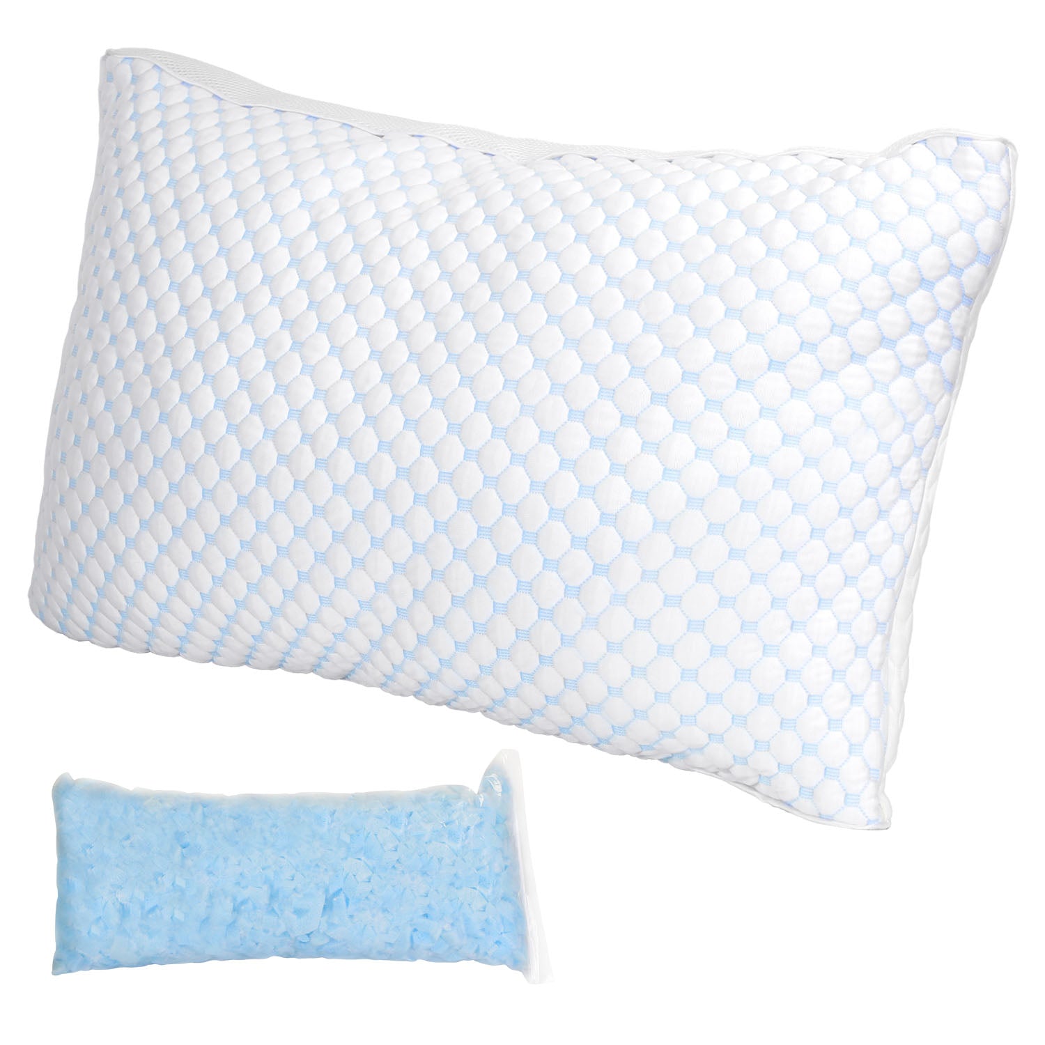 Are you having a hard time getting to sleep? Maybe it\'s time to get rid of your old, worn-out pillow and invest in a shredded memory foam pillow! Design with a double-sided pillowcase, one side staying cool and the other side keeping comfortable, an ideal pillow for all seasons. Filled with gel infused blue memory foam sponge, soft, breathable and supportive for all kinds of sleepers. We also provide an extra bag of sponge, allowing you to customize the filling to suit your size, shape, or sleep position. The pillow case is removable and machine washable. A thoughtful gift for your beloved ones and yourself!