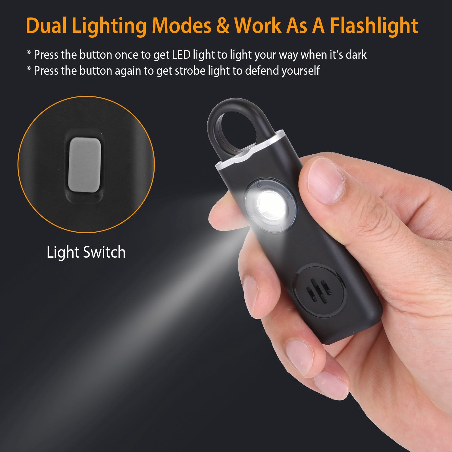 Rechargeable Personal Safety Alarm Portable 130dB Self-defense Siren with Strobe Light LED Light Carabiner Emergency Escape Tool for Women Kids Elderl