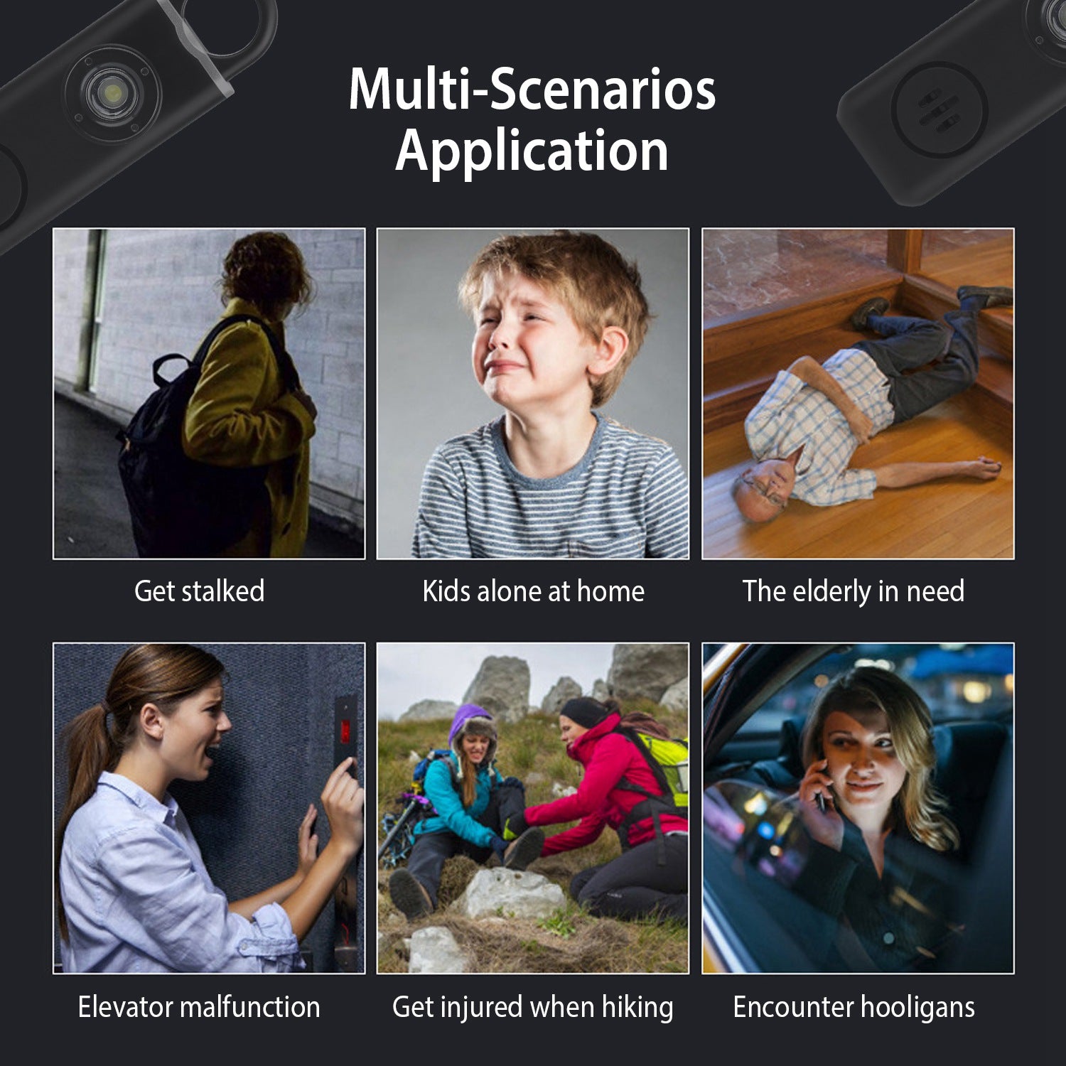 This personal safety alarm is perfect for walkers, joggers, dog walkers and hikers etc.. You can use the alarm to deter bad persons or call for help when dangerous or light your way when safe. ItÕs suitable for everyone, especially for women, kids and the elderly. Use the provided carabiner to clip it to your bag, waist, or car keys or keep in your pocket so that you can feel safer and walk with confidence.