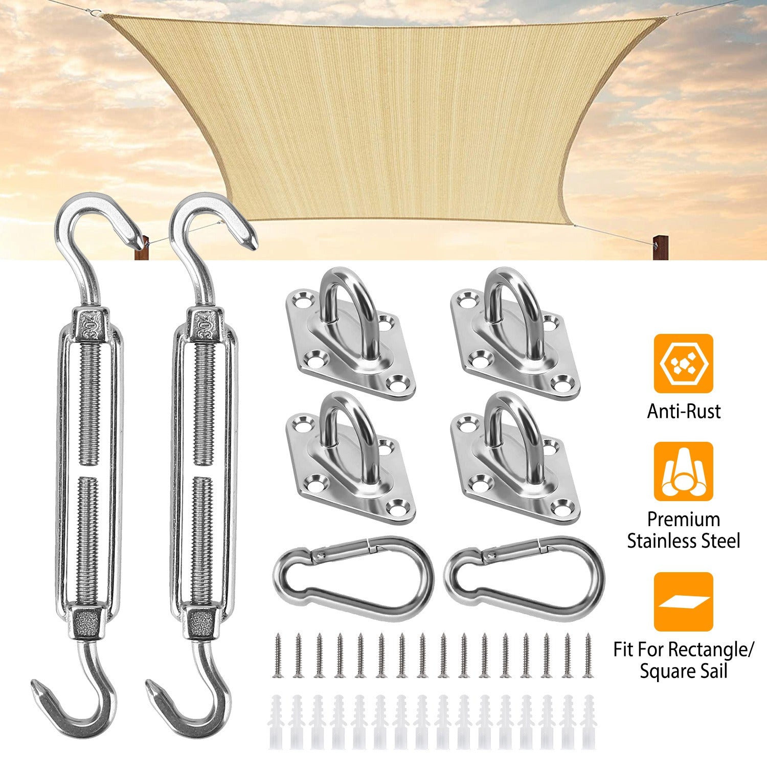 Sun Shade Sail Hardware Kit Stainless Steel Canopy Installation Kit Fixing Accessory for Rectangular Square Shade Sail Installation