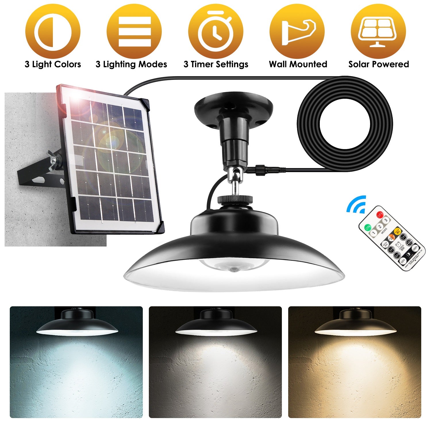 Solar Shed Light with Separate Panel Wall Mounted Solar Pendant Light Indoor Outdoor with Remote Timer 3 Modes 3 Light Colors IP 55 Waterproof for Gaz