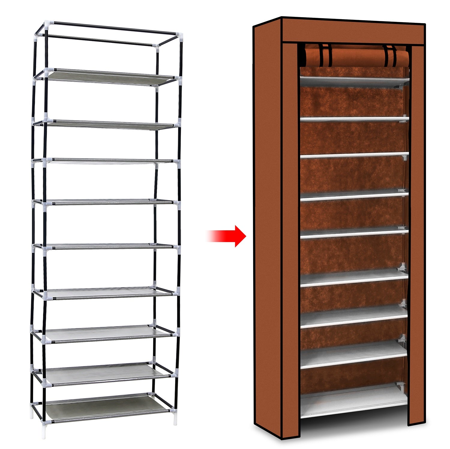 iMounTEK 10 Tiers DIY Shoe Cabinet Dustproof Easy Assemble Tidy Shoe Rack Non-Woven Fabric Holding 27 Pair Shoes Brown