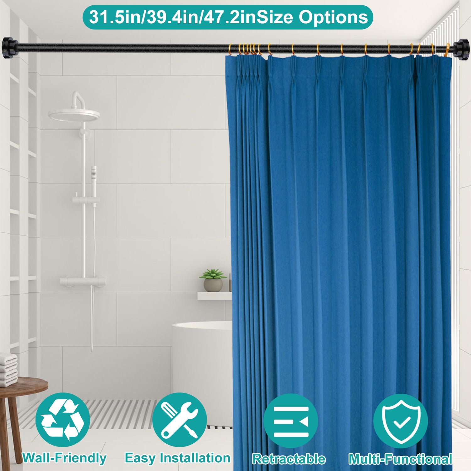 Shower Curtain Rod Adjustable Tension Curtain Rod Stainless Steel Spring Curtain Pole Heavy-Duty Steel for Bathroom Wardrobe Kitchen Balcony 31.5in/39
