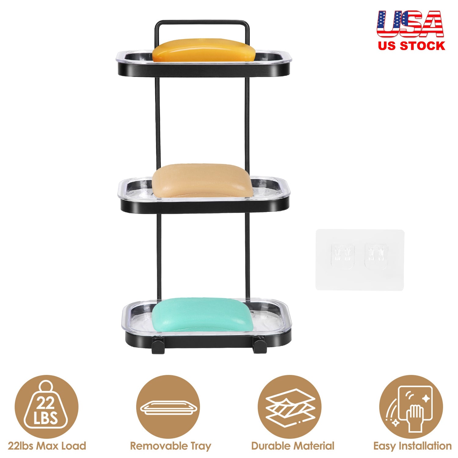Soap Dish Soap Bar Holder Square Soap Rack Wall Mounted S Bar Shower Bathroom Self with 2 Hooks Clear Trays
