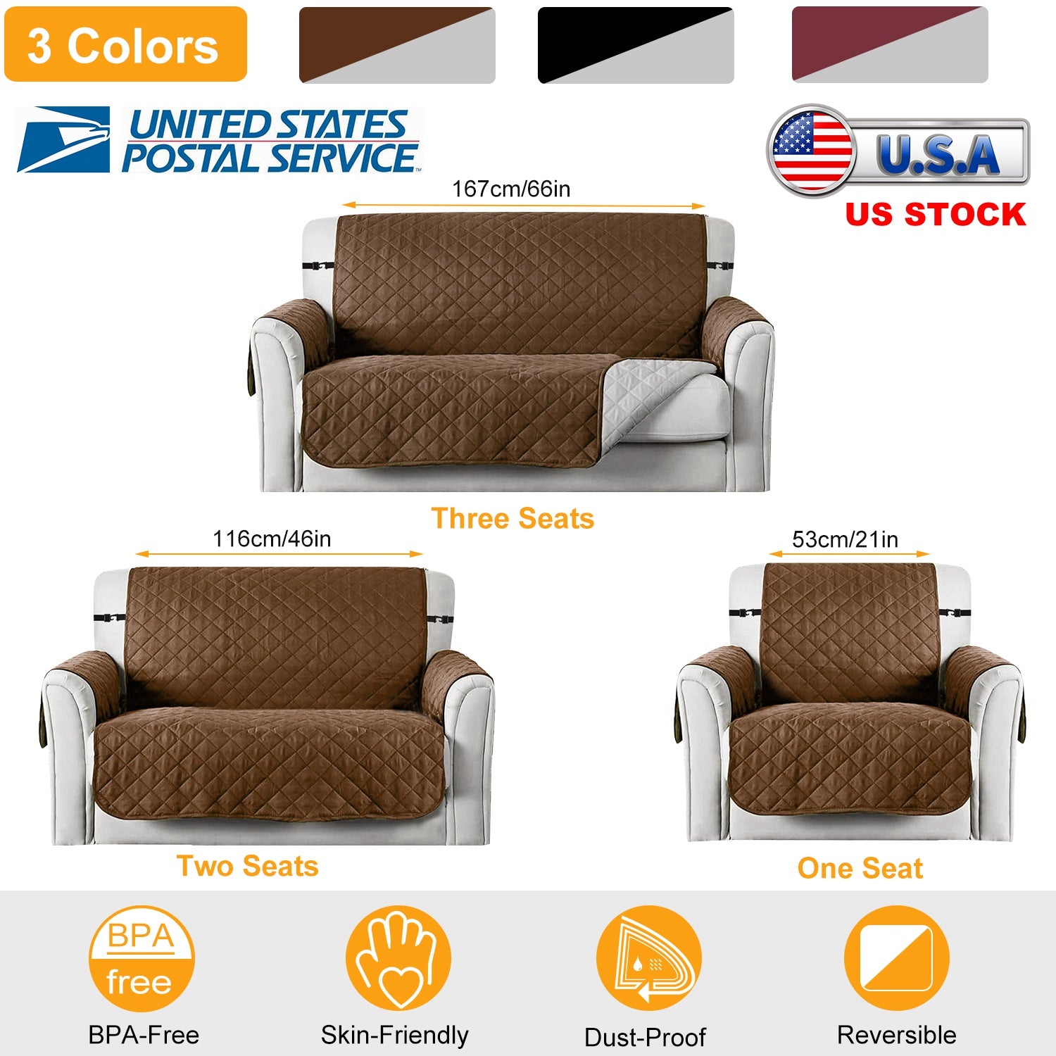Reversible Sofa Cover Chair Loveseat Couch Slipcover Microfiber Cushion Furniture Protector Shield Water-Resistant w/ Elastic Strap for Kids Pet Dog C