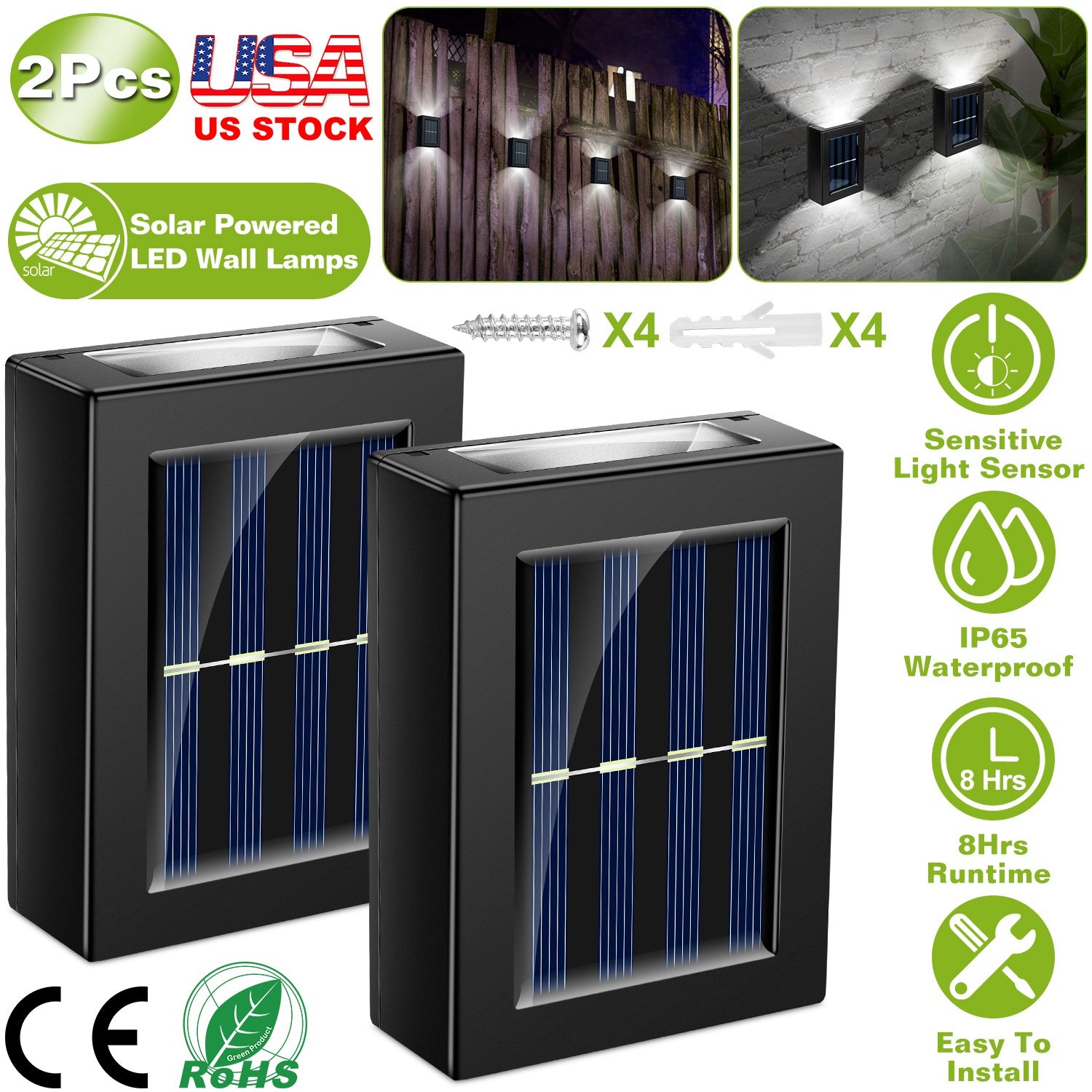 2Pcs Solar Deck Lights Outdoor 2LED Beads Waterproof Sensor Fence Stair Lamps For Patio Landscape Yard White Lighting Color