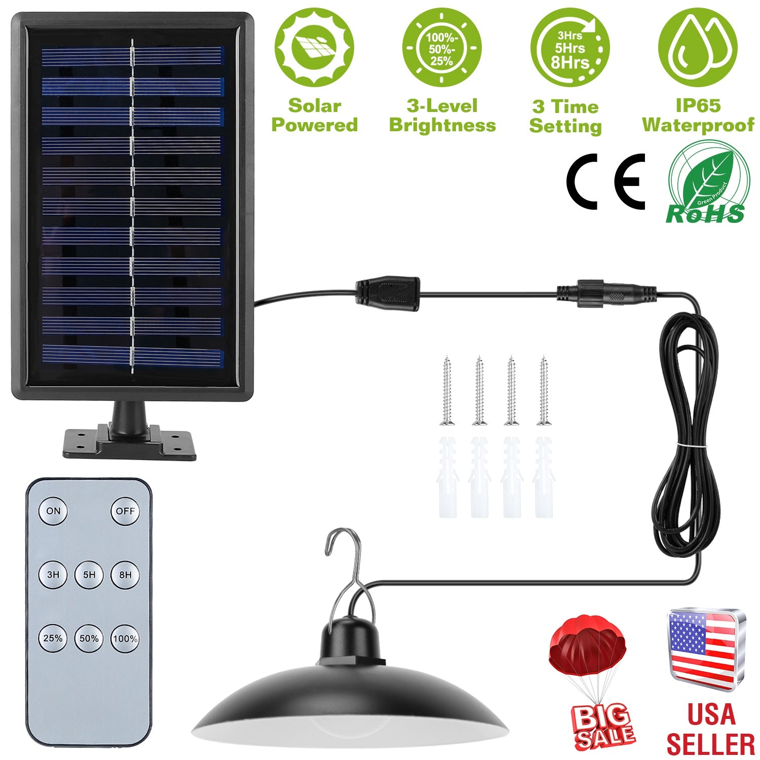 Solar Shed Lights Dimmable Timing Auto Off Sensor Hanging Lamp IP65 Waterproof Remote Control Pendant Light For Garden Patio Balcony with 9.84FT Wire