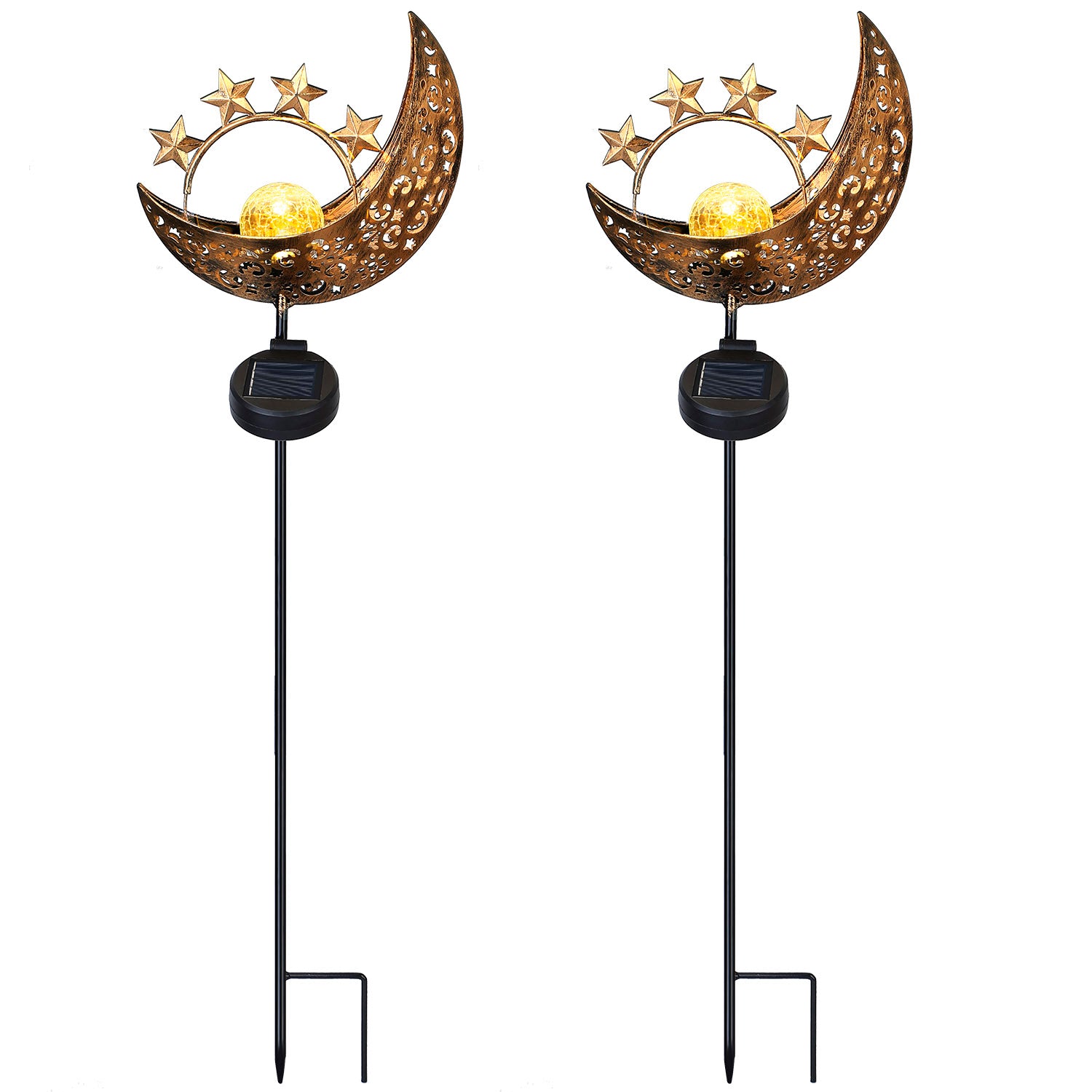 Solar Powered Moon Star Lamp IP54 Waterproof Decorative Lamp Crackle Glass Globe Stake Iron Lights For Garden Lawn Yard Driveway