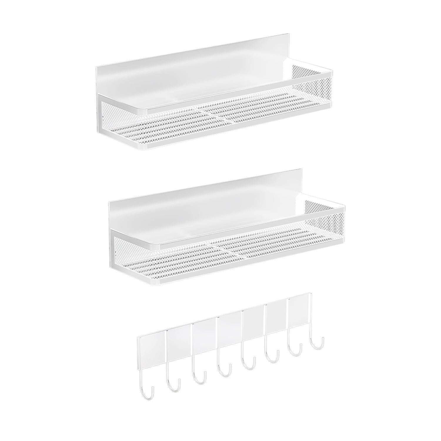 Sometimes you just need an extra space to store your spices. This magnetic spice rack set ensures that there is no more clutter or countertop storage required for your seasoning needs. This magnetic spice holder is made of premium and features super-strong magnets on the back, making it easy to attach to the side of your refrigerators, ovens, microwaves, refrigerators, stoves or other iron surface. Come with 3 packs with total 55lbs load bearing, 1 large spice rack, 1 medium spice rack and 1 hook rack with 8 hooks, ideal for storing sugar, salt, olive oil, spices, pepper or other small items or for holding scissors, measuring cups, spoons, oven mitts, keys etc.. Rustproof and suitable for damp environment. See-through and safe to use. No drilling and easy to install.