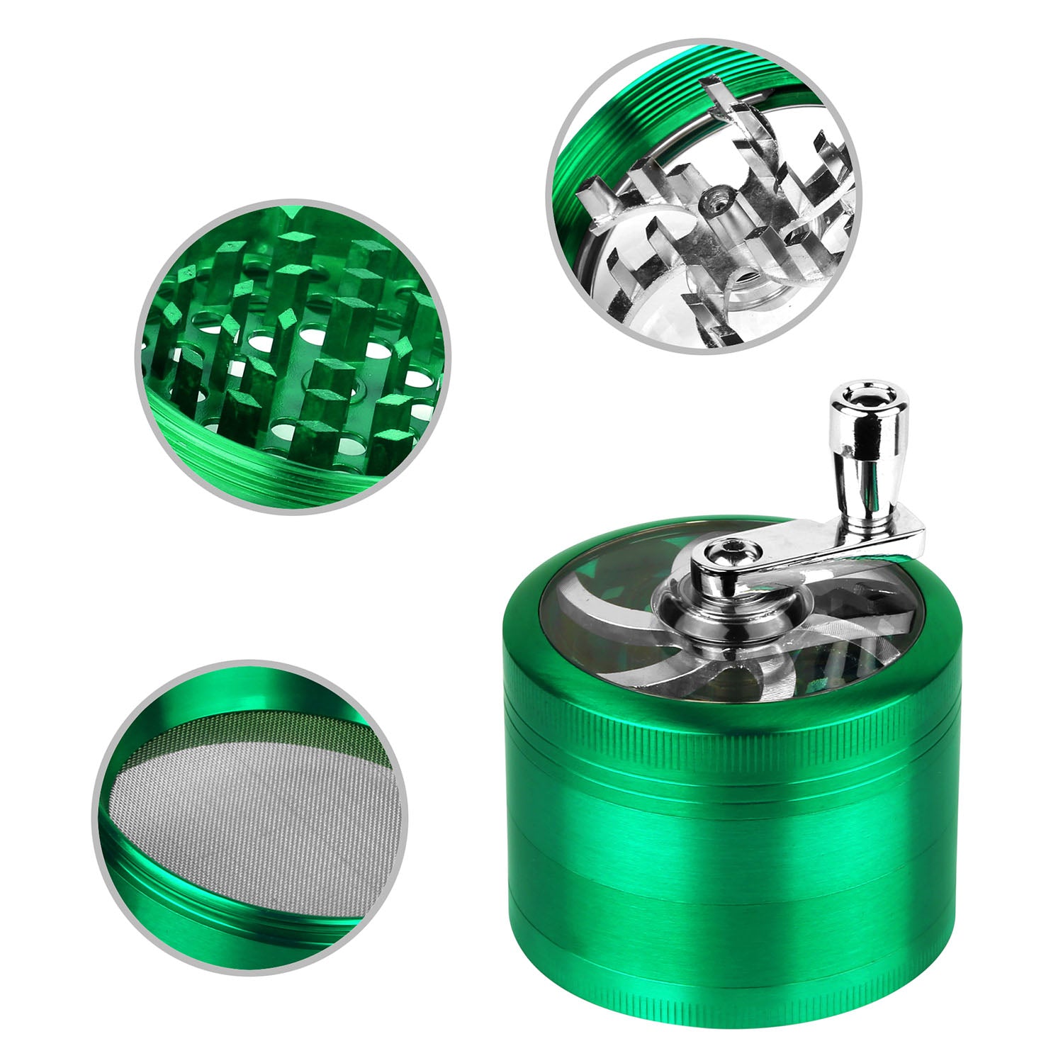 Herb Spice Tobacco Grinder 2.5-inch 4-Piece Zinc Alloy Hand Crank Crusher Kitchen Mill with Pollen Scraper