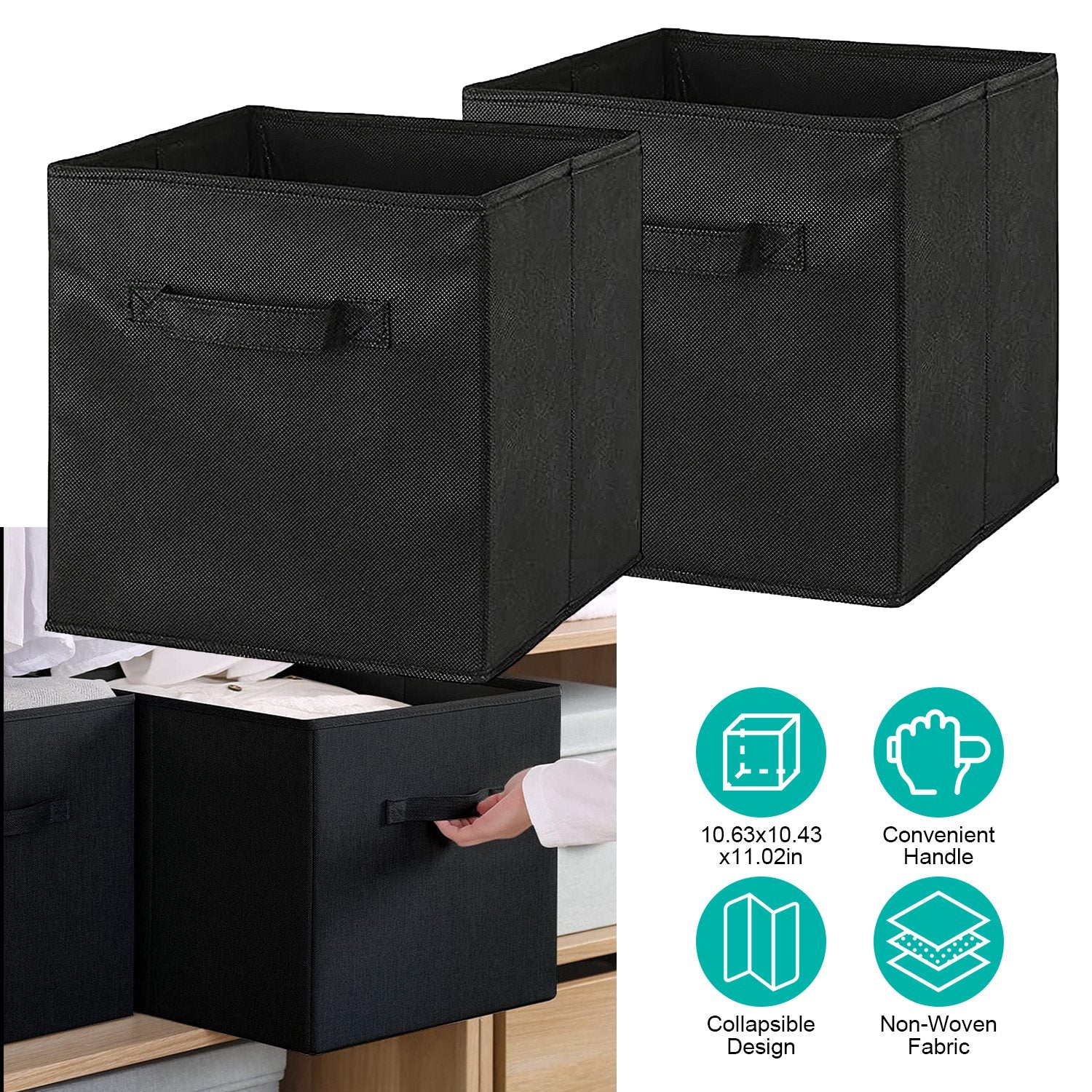 2 Sets Storage Bin Non-Woven Fabric Cube Organizer with Handle Foldable Cube Basket For Shelves Closet Living Room Bedroom Black