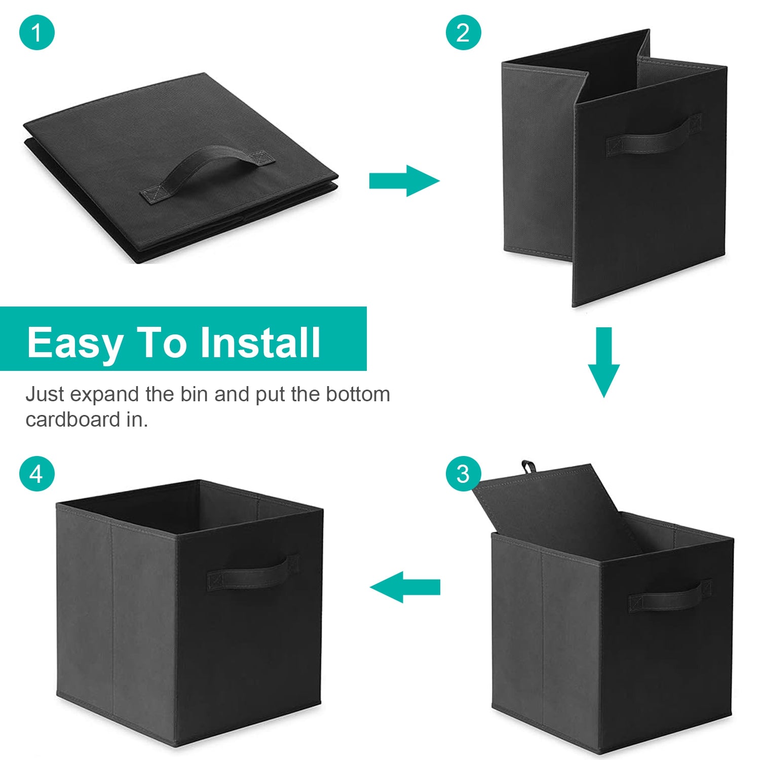 Our 2 sets of cube storage bins have large capacity, can easily hold various items, like clothes, towels, children toys, books , etc., make your clutter and messy room look tidy and well organized again. Designed with handle on surface and strap in the bottom support plate, convenient and effortless for you to pull out and disassemble the bins. After folding, 0.78in thickness can be store at anywhere without taking too much space.