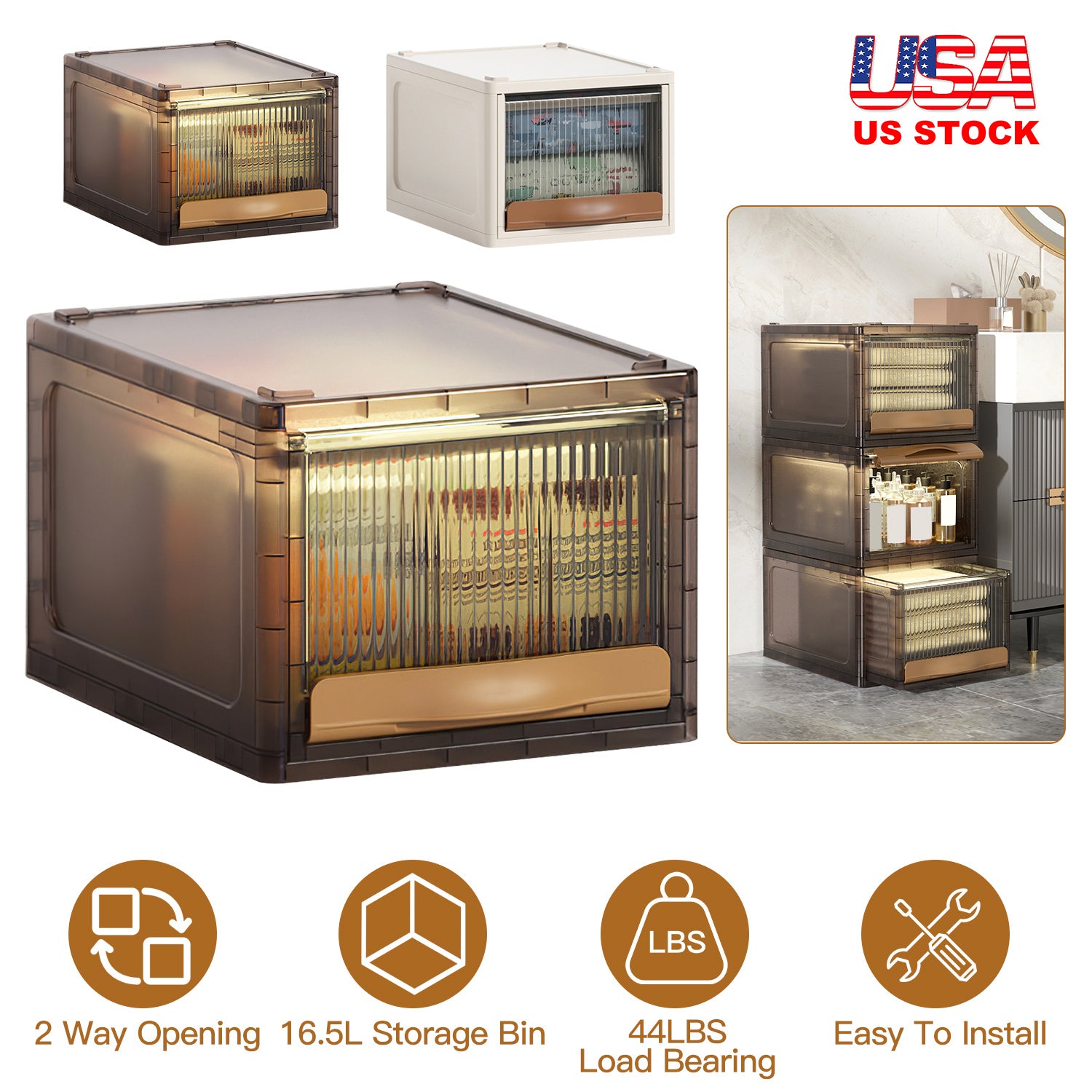 16.5L Stackable Storage Bin Plastic Drawer with Lid Closet Organizer Two Ways Opening Storage Box for Closet Kitchen Living Room Bedroom